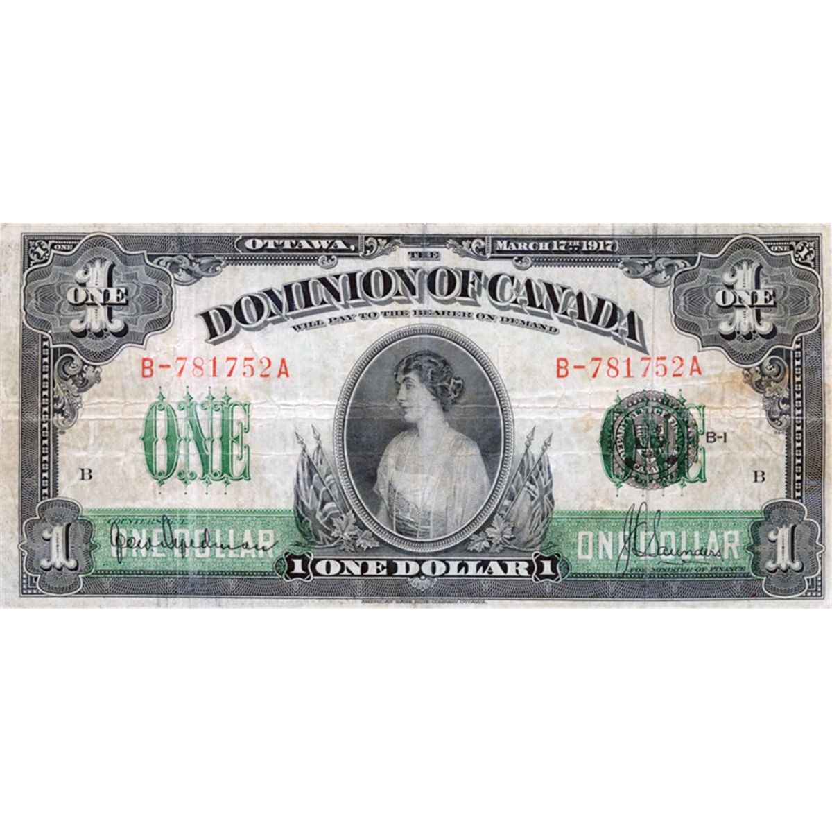 $1.00. March 17, 1917. DC-23c. No. B-781752A/B. PMG graded Very Fine-20.