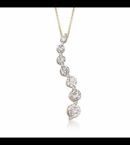 Cherish life's twists and turns with this 1.00 ct. t.w. diamond journey necklace. The pendant swerves with a graduation of round brilliant-cut diamonds in 14kt yellow gold. Suspends from a box chain with a springring clasp. Diamond journey pendant necklace