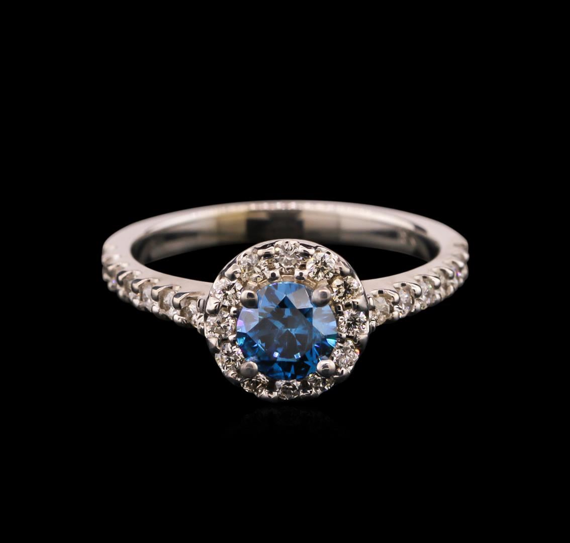 One ring featuring: 14KT white gold weighing 3.12 grams containing one blue diamond center stone with a total weight of 0.60ct and 36 white side diamonds with a total weight of 0.40ct.