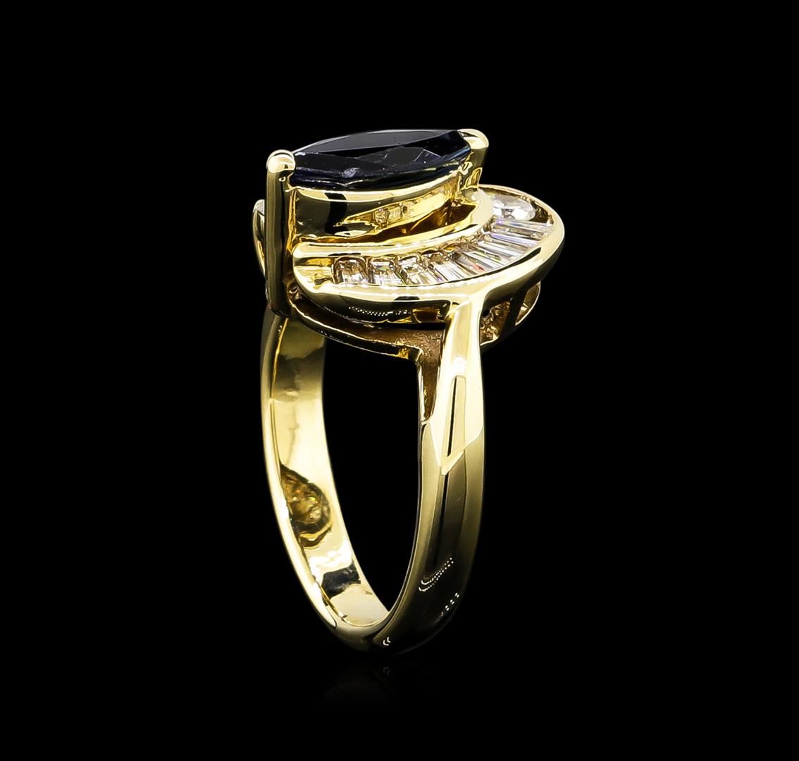 One ring featuring: 14KT yellow gold weighing 4.62 grams containing one blue sapphire with a total weight of 1.00ct and side diamonds with a total weight of 0.65ct.