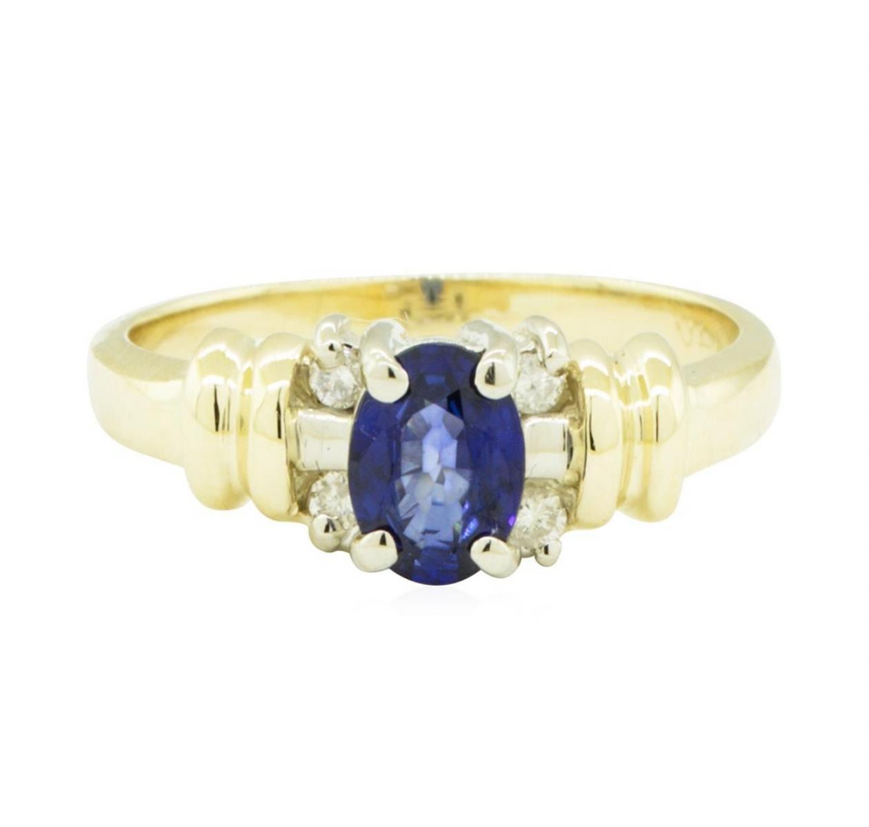 1.00 ctw Blue Sapphire and Diamond Ring - 14KT Yellow and White Gold