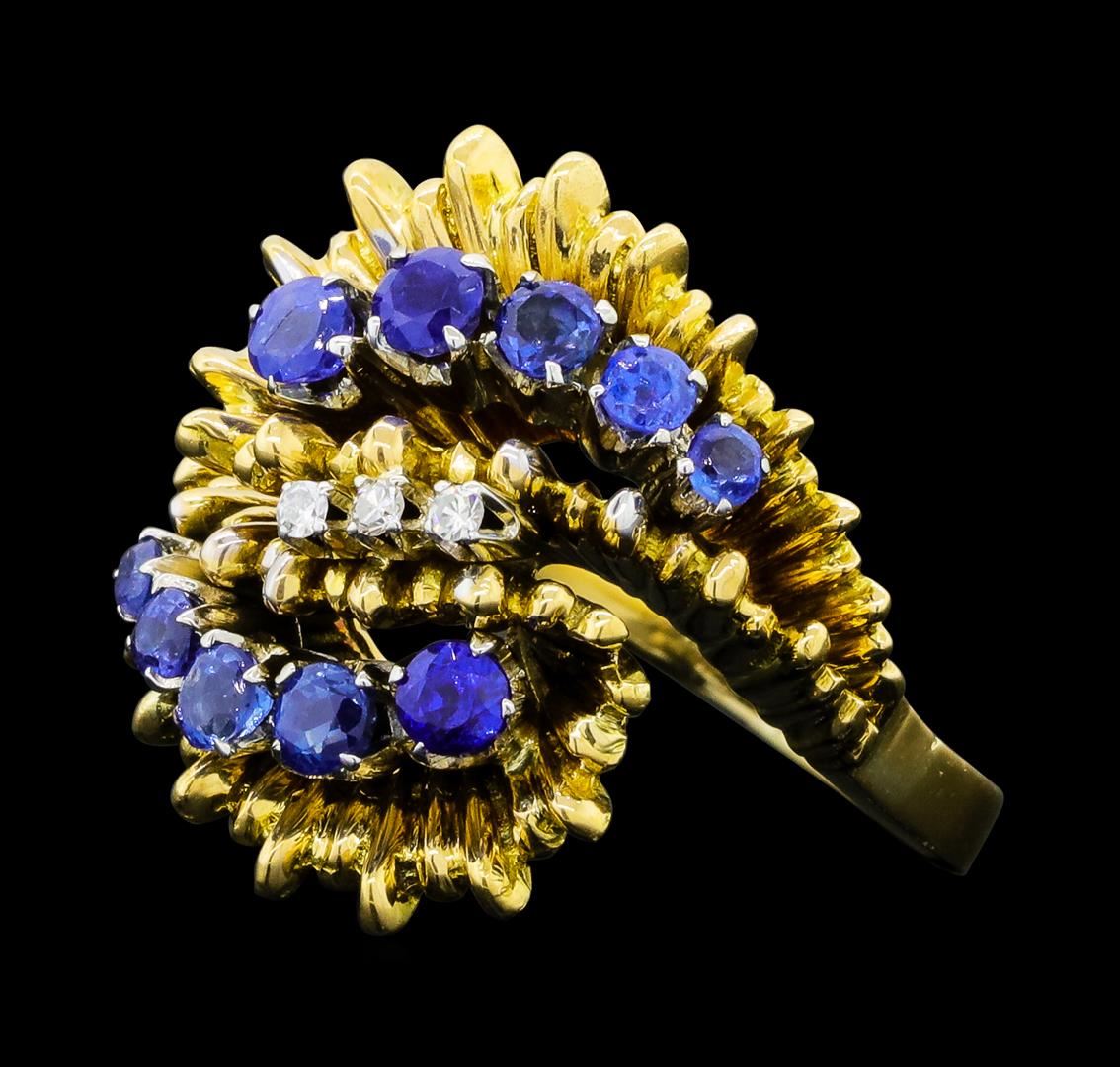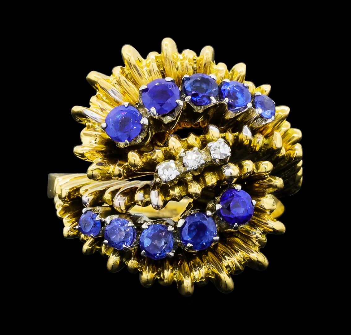 One lady's ring featuring: 18KT yellow gold weighing 9.4 grams containing sapphires weighing 1.00ctw and diamonds weighing 0.03ctw.