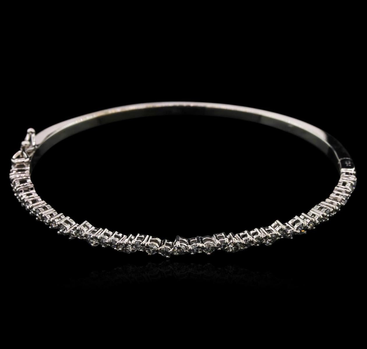 One electronically tested 14KT white gold lady's combination cast & assembled bangle bracelet with a tongue clasp with foldover safety with a straight line with a bright polish finish. Condition is new, good workmanship. Containing: Forty-One prong set round brilliant cut diamonds, measuring 1.90 - 1.80 x 1.17mm (depth est.) approximate total weight of 41 Stones = 1.00ct. Graded in the setting. Clarity: SI-2 to I-1. Color: I - Good. Total Weight of Diamonds 1.00ct. Total Weight of Bracelet 10.40gm. GAS Appraised.