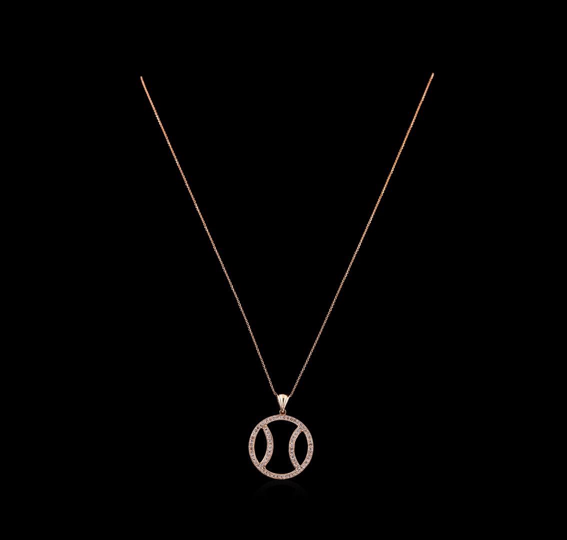 One basketball pendant with chain featuring: 14KT rose gold weighing 6.50 grams containing diamonds with a total weight of 1.00ct.