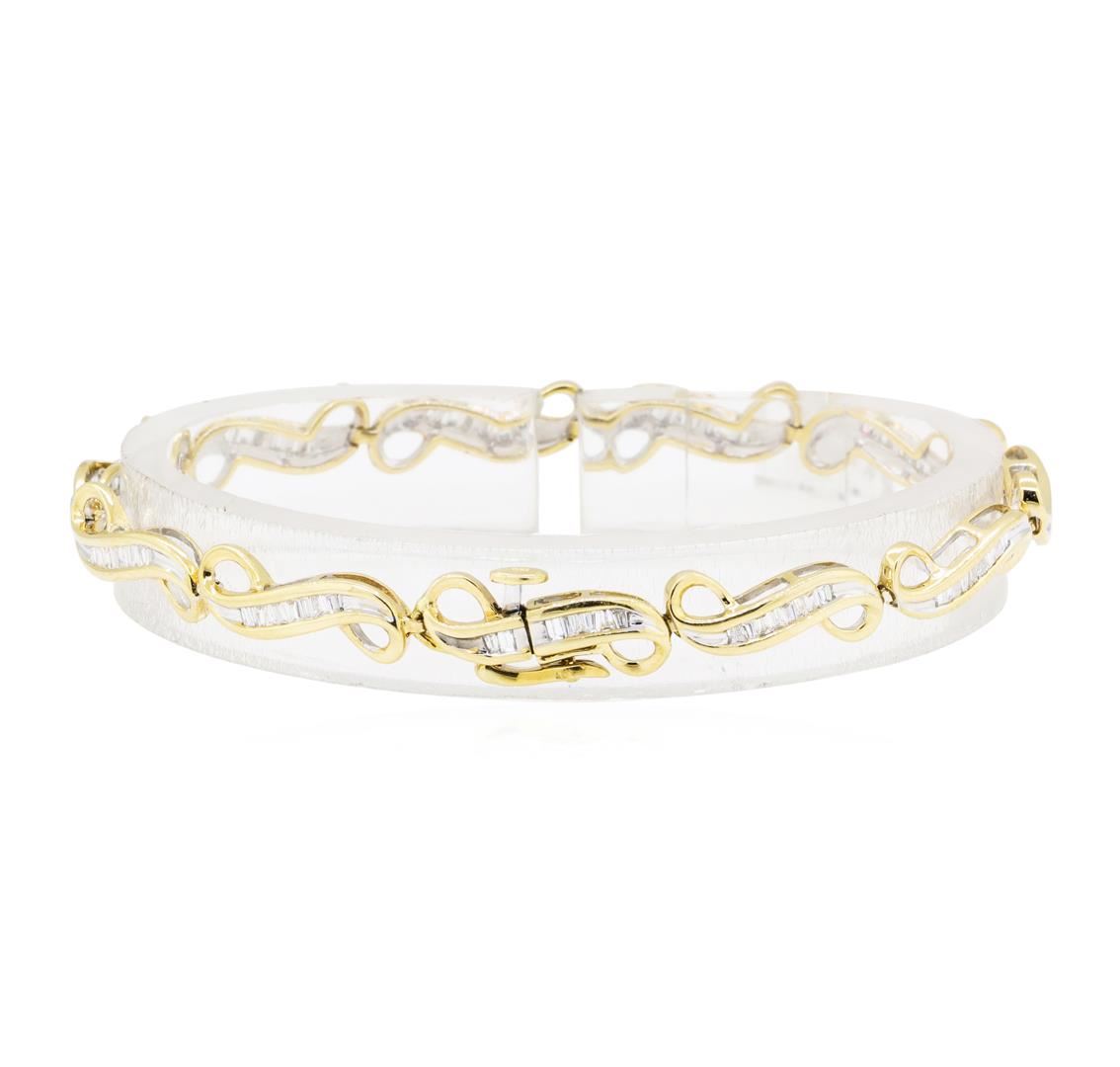 One lady's bracelet featuring: 14KT yellow gold weighing 6.9 grams containing diamonds weighing 1.00ctw. The bracelet measures six and a half inches in length.