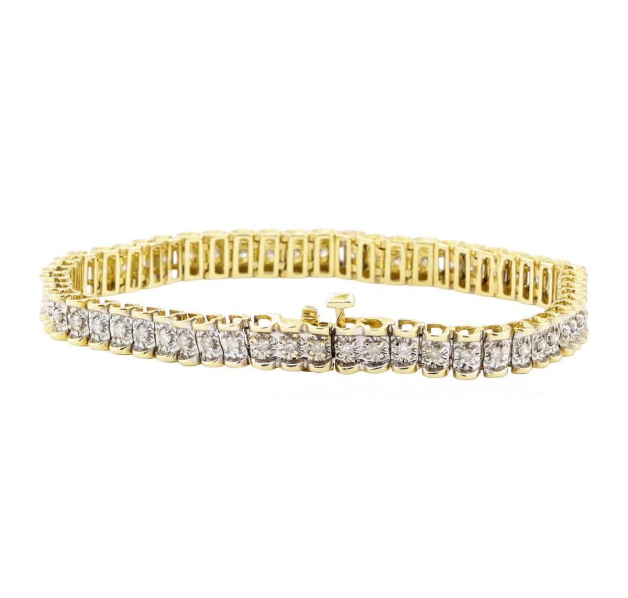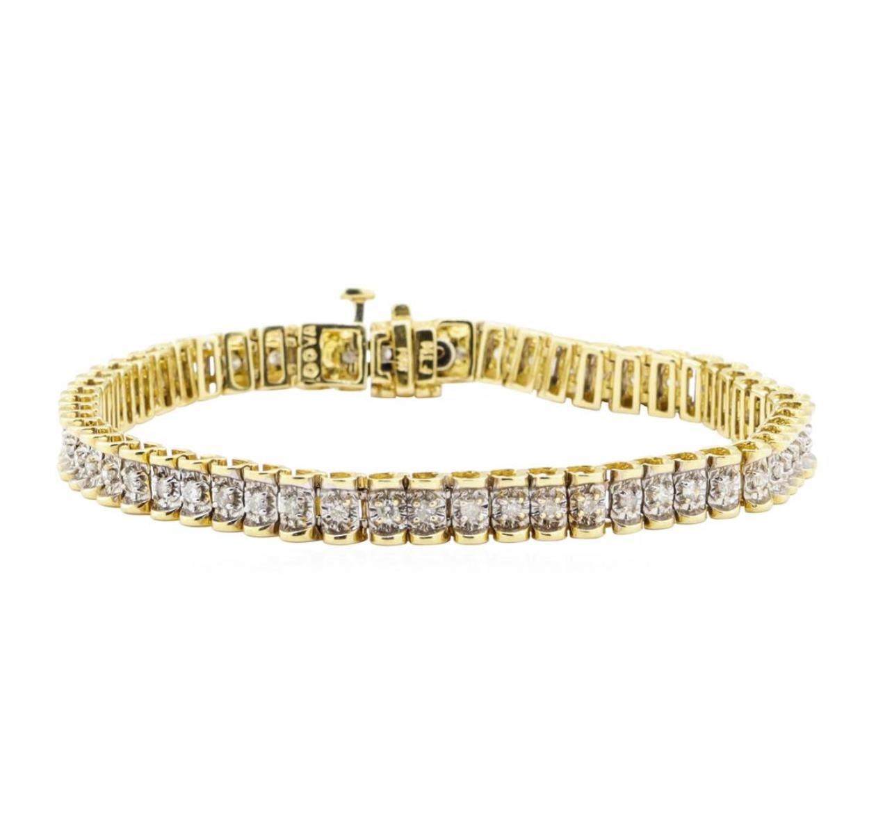 One bracelet featuring: 14KT yellow gold weighing 10 grams containing diamonds weighing 1.00ctw. The bracelet measures six and a half inches in length.