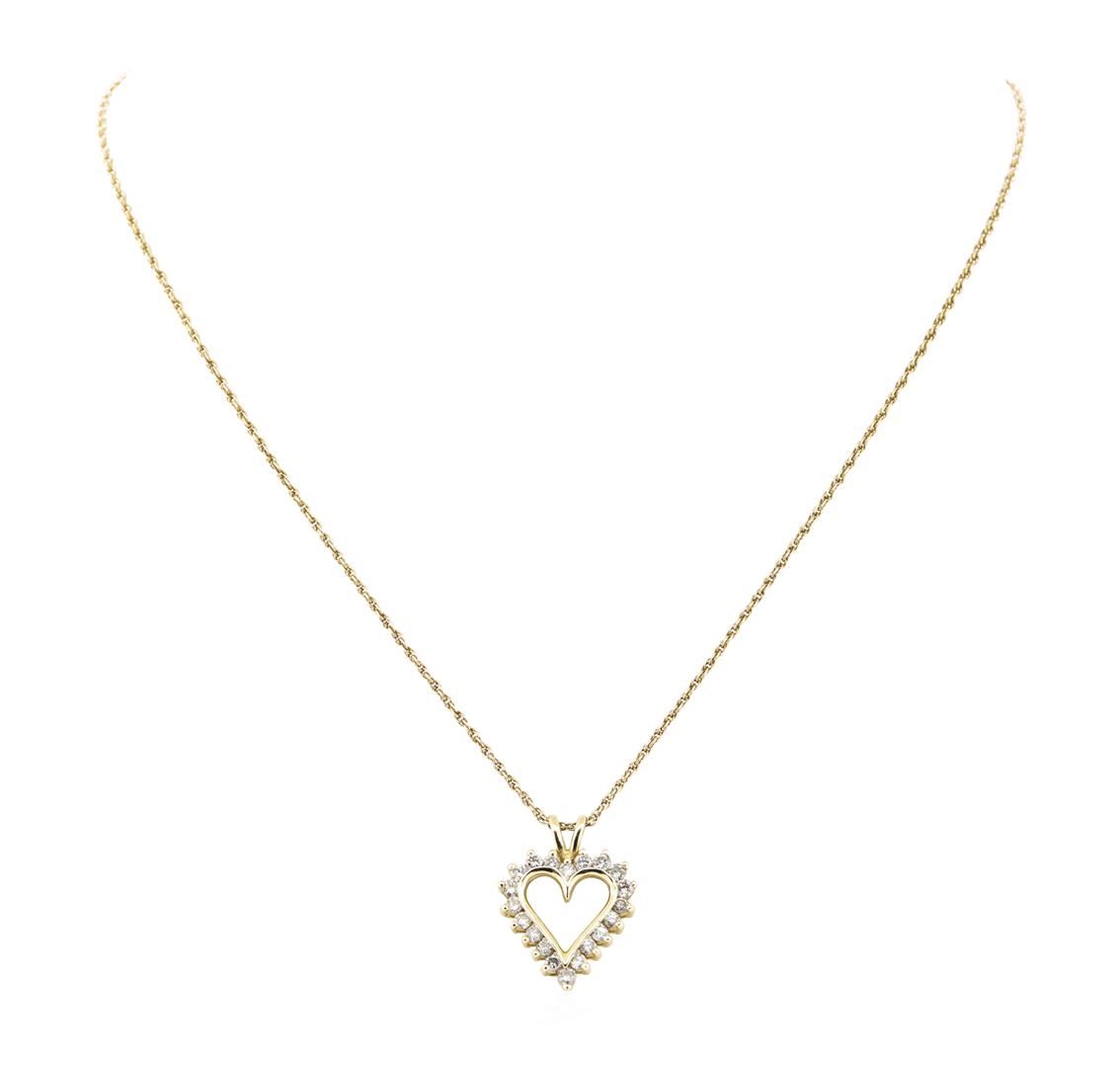One pendant with an attached eighteen inch long loose rope chain featuring: 14KT yellow gold weighing 5.9 grams containing diamonds weighing 1.00 ctw.
