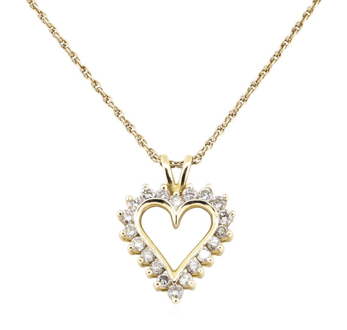 One pendant with an attached eighteen inch long loose rope chain featuring: 14KT yellow gold weighing 5.9 grams containing diamonds weighing 1.00 ctw.