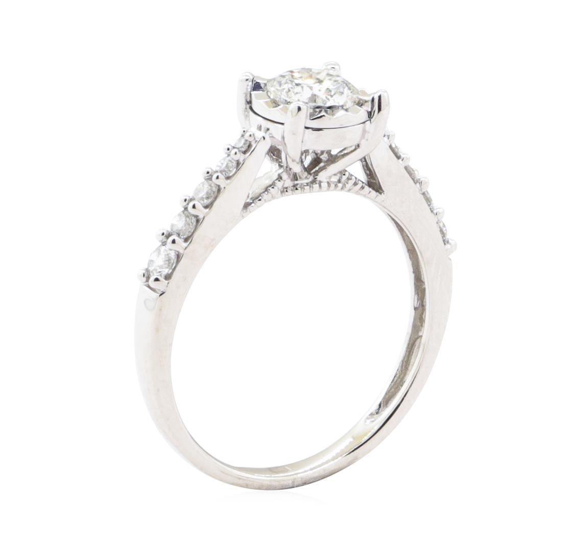 One electronically tested 10KT white gold lady's combination cast & assembled fashion ring with a cathedral solitaire with a bright polish finish. The featured lady's ring has a shank measuring 2.00 millimeters wide. Identified with markings of '10K'. Con