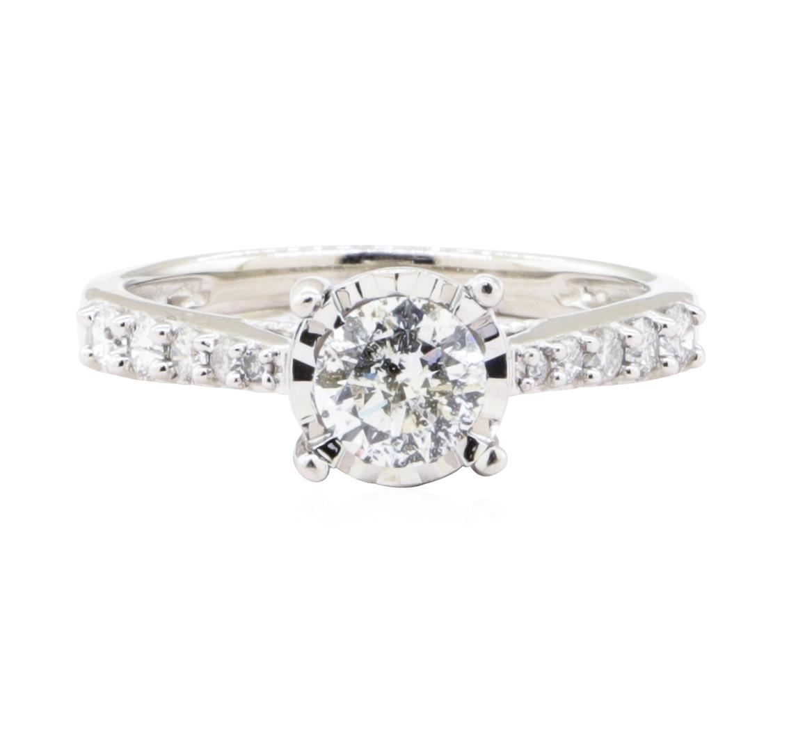One electronically tested 10KT white gold lady's combination cast & assembled fashion ring with a cathedral solitaire with a bright polish finish. The featured lady's ring has a shank measuring 2.00 millimeters wide. Identified with markings of '10K'. Con