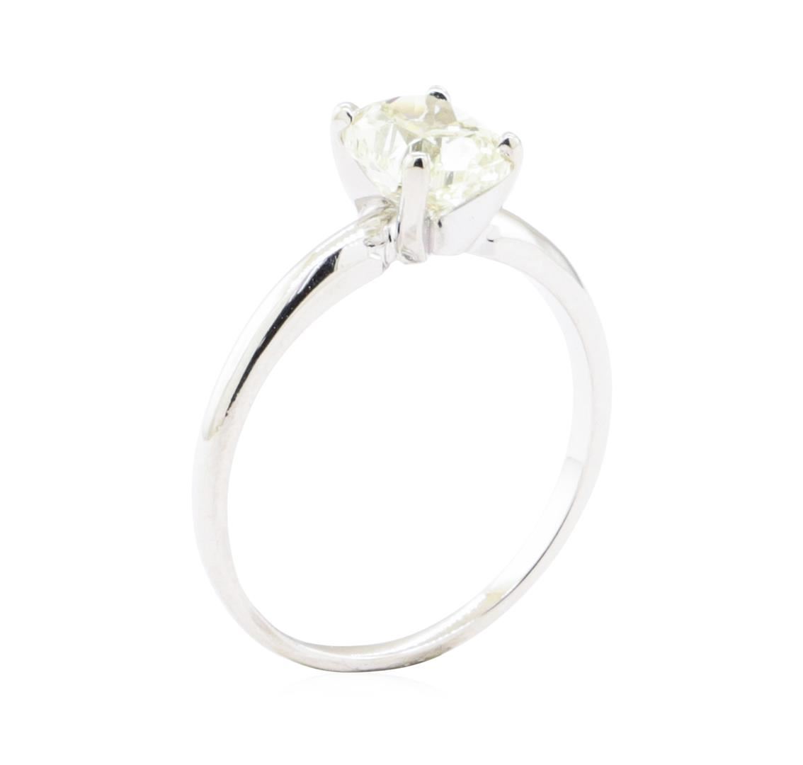 One electronically tested 14KT white gold lady's combination cast & assembled engagement ring with a solitaire with a bright polish finish. The featured lady's ring has a shank measuring 1.20 millimeters wide. Condition is Good. Containing: One prong set cushion cut diamond, measuring 6.11 x 5.04 x 3.80mm (depth est.) , 5.00.%. GTCF approximate weight of 1.00 ct. Graded in the setting. Color L - M Clarity VS-2 Cut Very Good. Total Weight of Diamonds 1.00 ct.. Total Weight of Ring 1.60gm GAS Appraised at $5570.00. GAS Appraised.