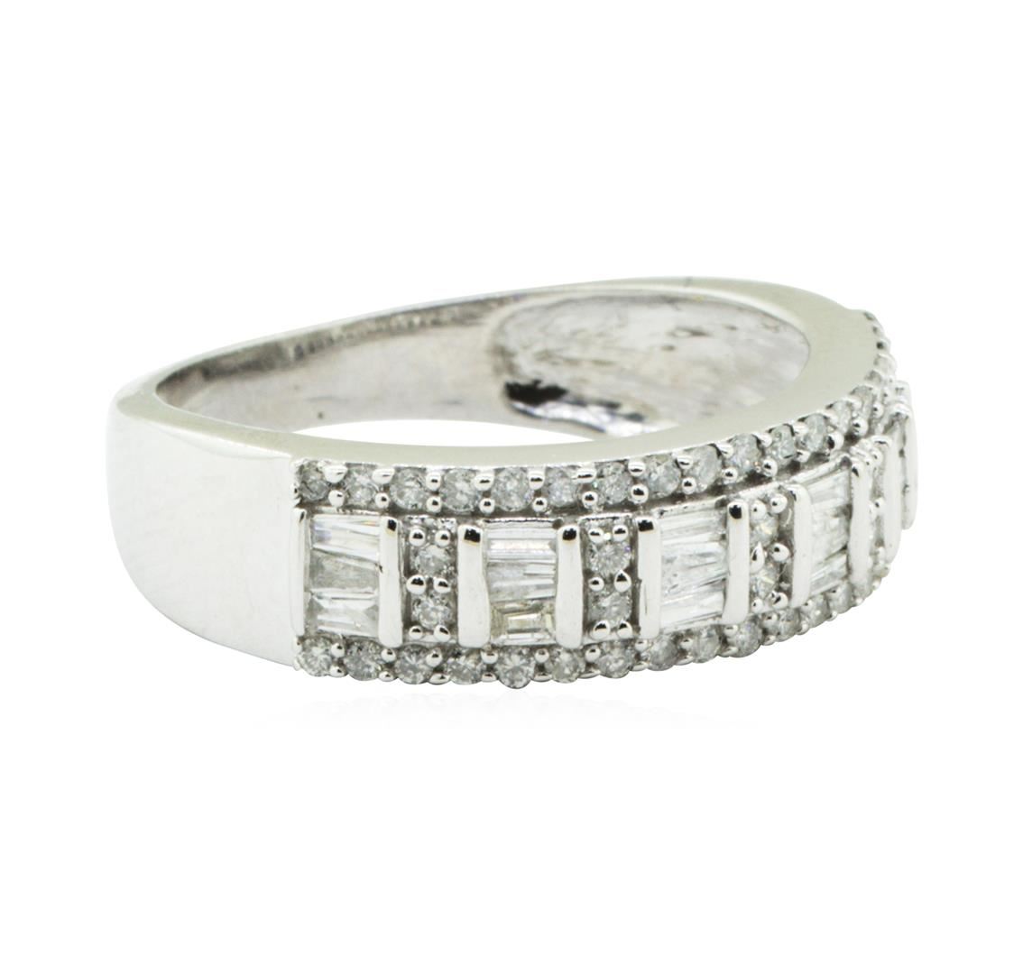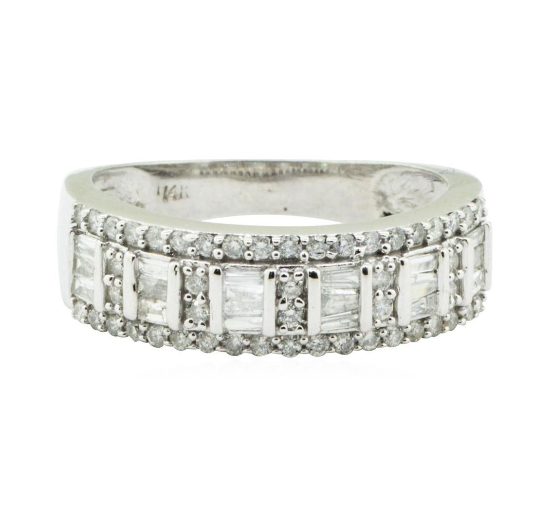 One ring featuring: 14KT white gold weighing 4.5 grams containing round and baguette cut diamonds weighing 1.00 ctw.