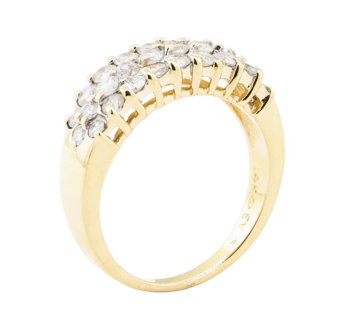 One ring with a three-row motif featuring: 14KT yellow gold weighing 4.4 grams containing diamonds weighing 1.00ctw.