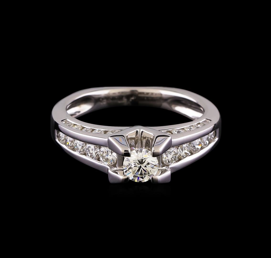 One ring featuring: 18KT white gold weighing 5.60 grams containing one diamond center weighing 0.25ct and side diamonds weighing 0.75ctw.