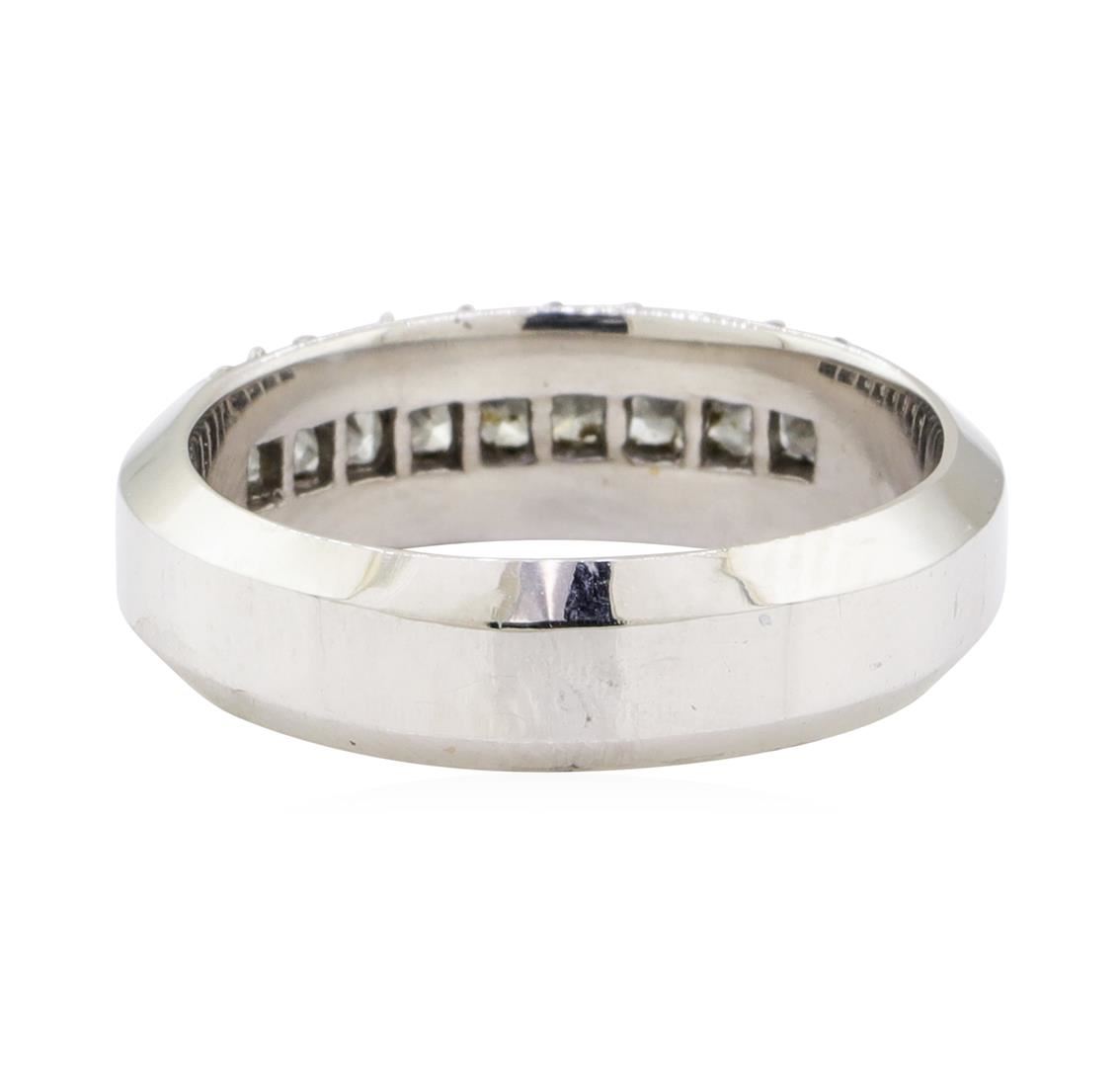 One beveled edge band featuring: 18KT white gold weighing 5.3 grams containing princess cut and round diamonds weighing 1.00ctw.