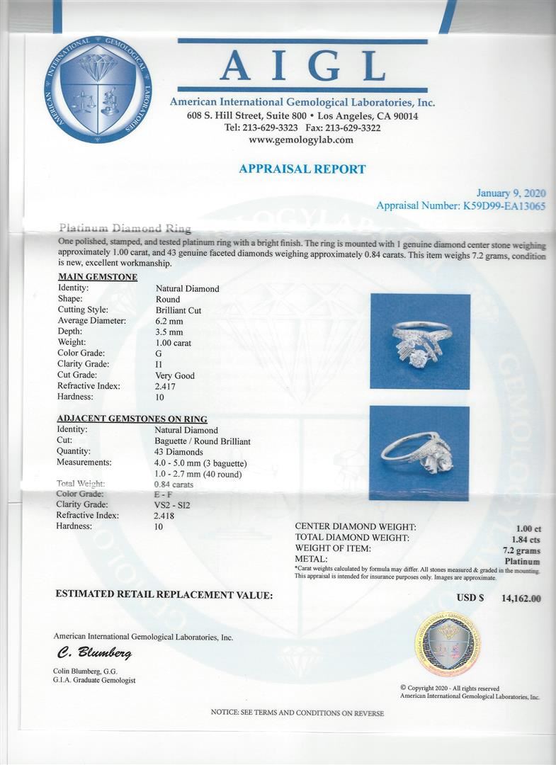 One 1.00ct Diamond Ring - Platinum. AIG certified. See Appraisal for more details. AIG Appraised.