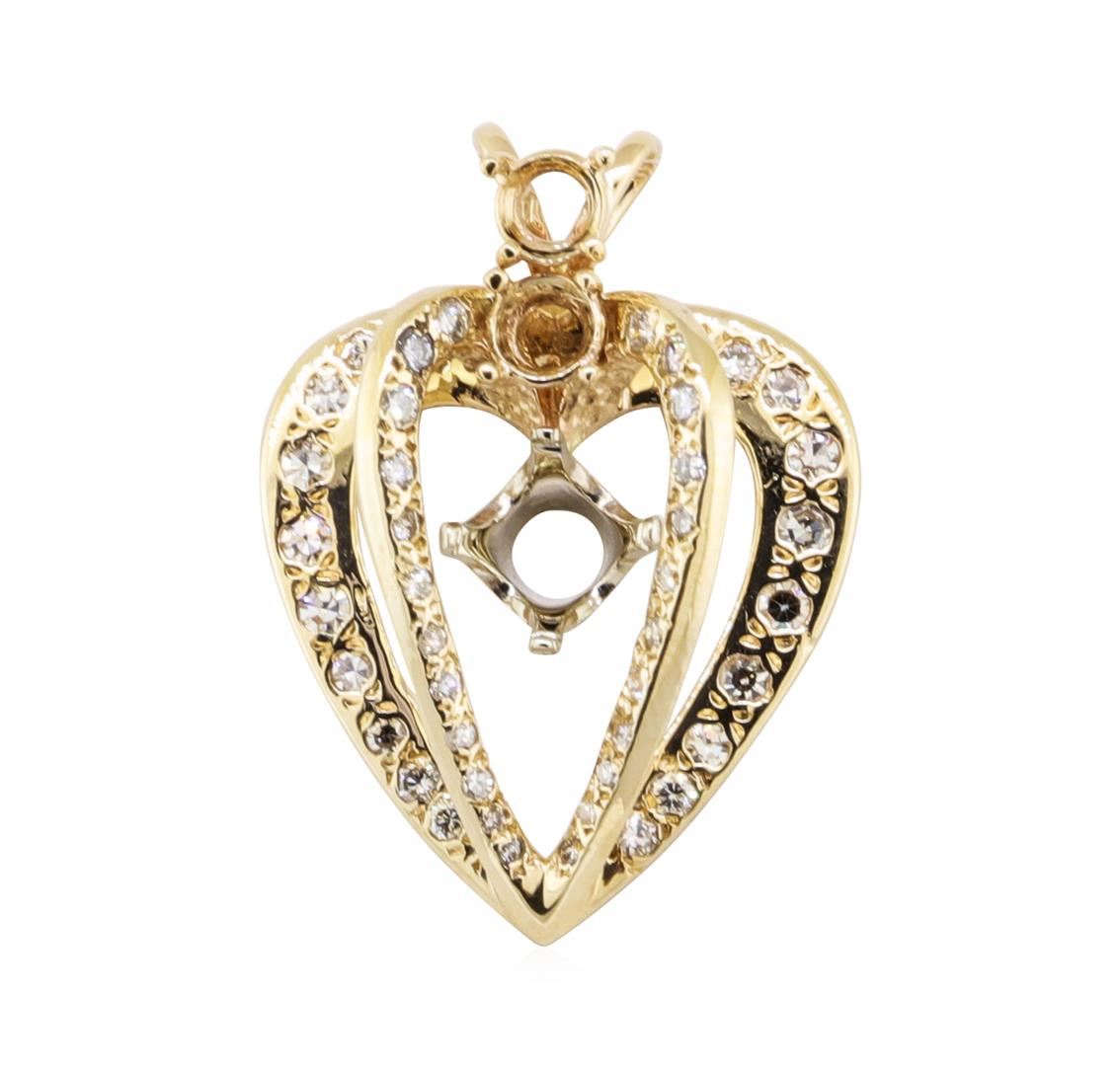 One semi-mount heart shaped pendant featuring: 14KT yellow gold 7.0 grams containing diamonds weighing 1.00ctw.