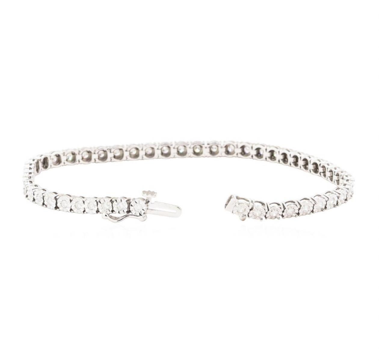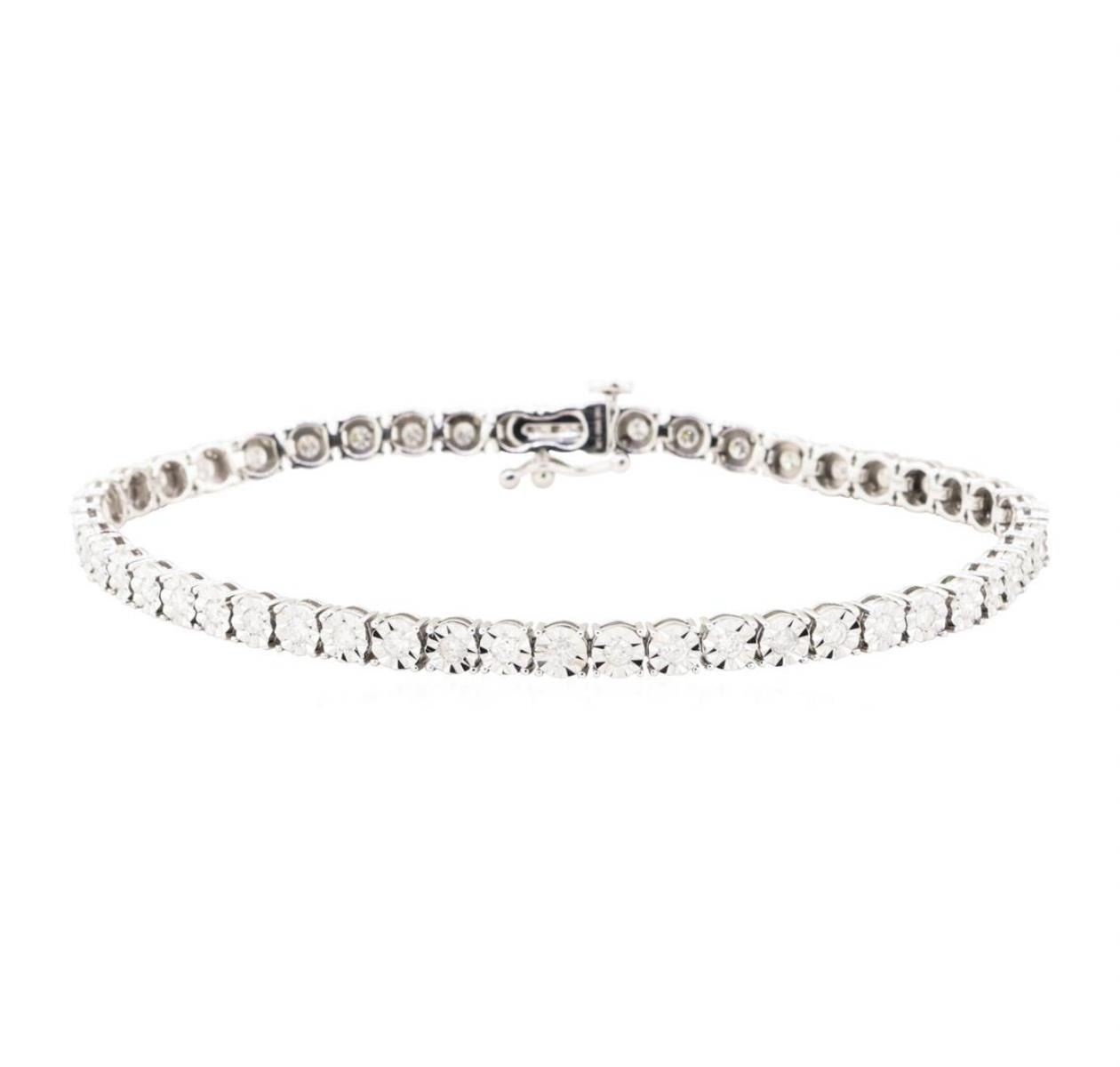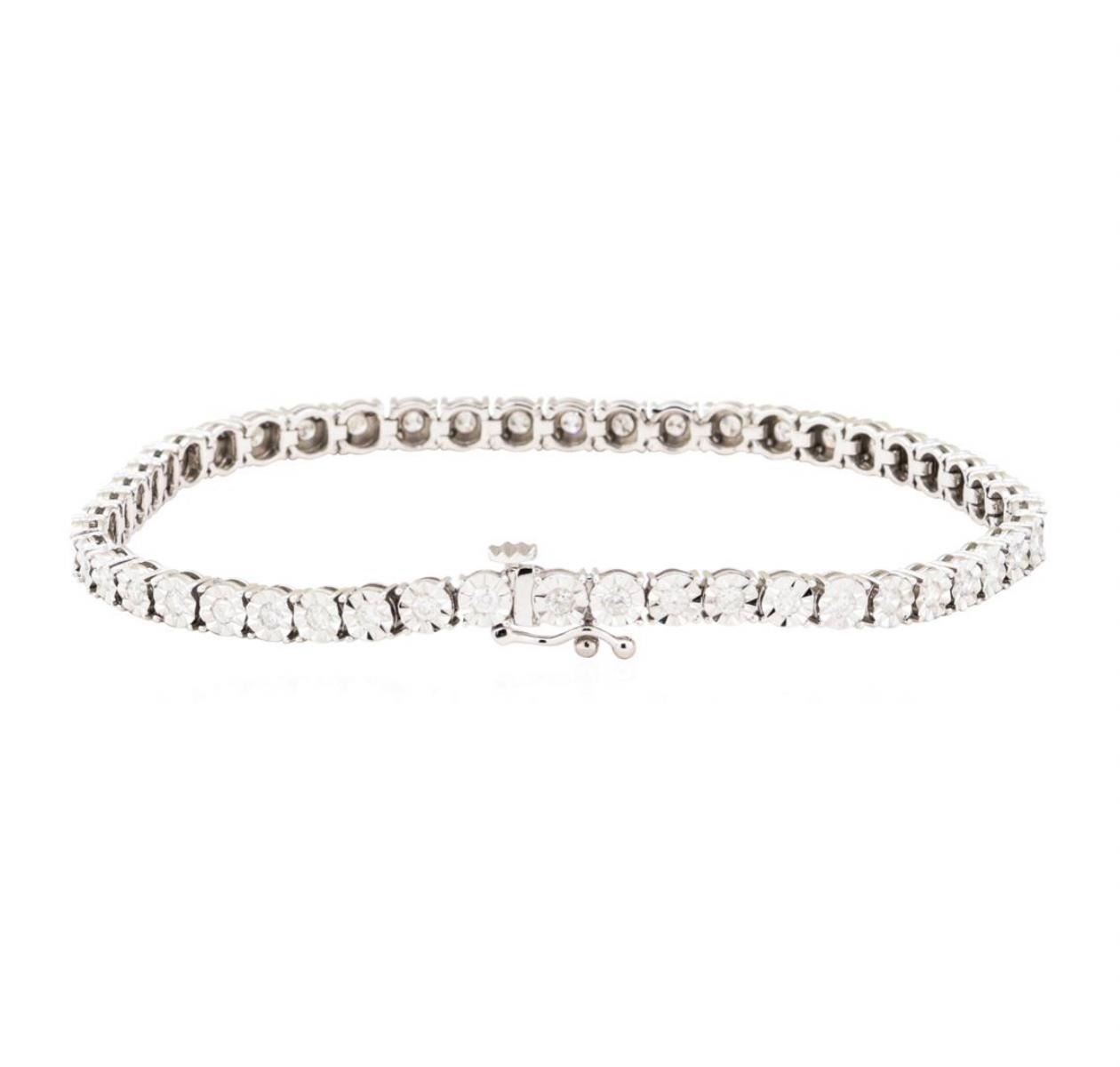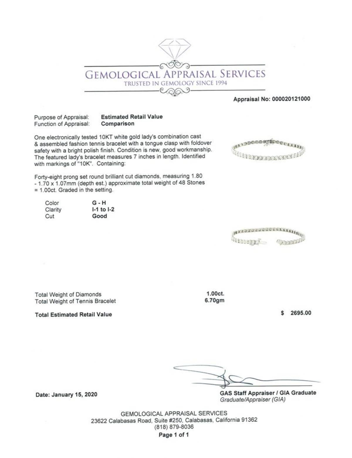 One electronically tested 10KT white gold lady's combination cast & assembled fashion tennis bracelet with a tongue clasp with foldover safety with a bright polish finish. The featured lady's bracelet measures 7 inches in length. Identified with markings GAS Appraised.