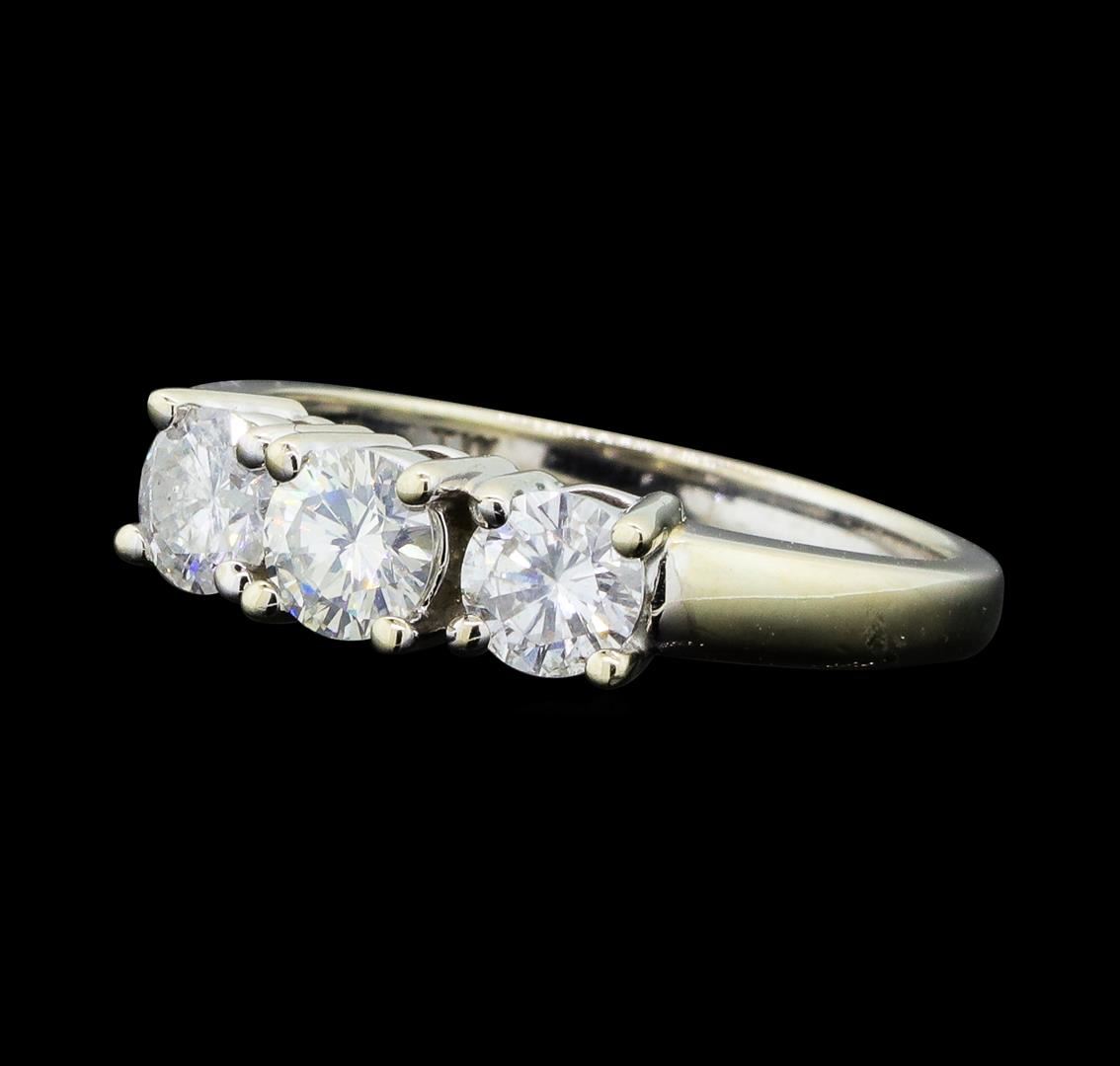 One lady's three stone ring featuring: 14KT white gold weighing 4.2 grams containing three diamonds weighing 1.00ctw.
