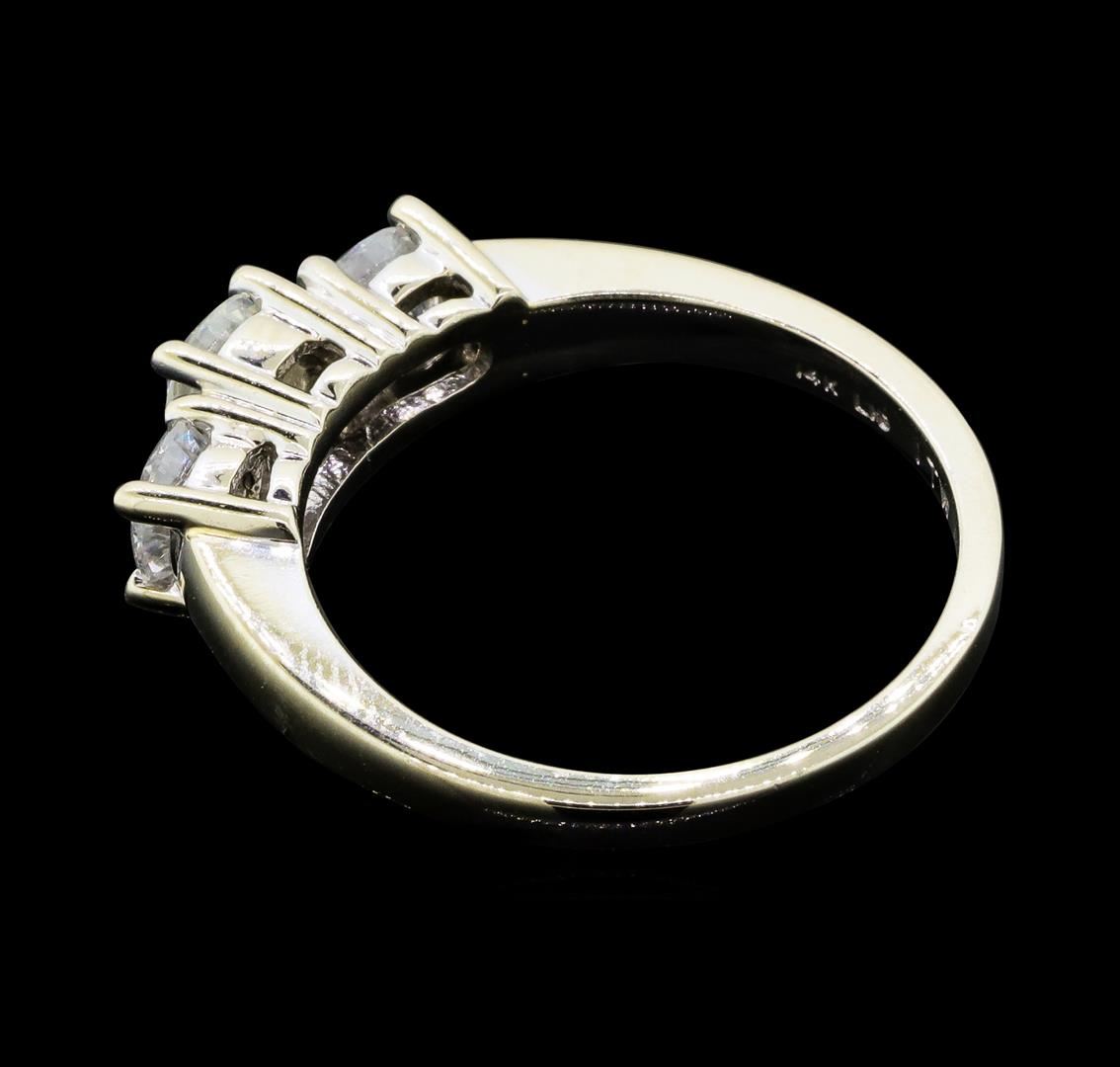 One lady's three stone ring featuring: 14KT white gold weighing 4.2 grams containing three diamonds weighing 1.00ctw.