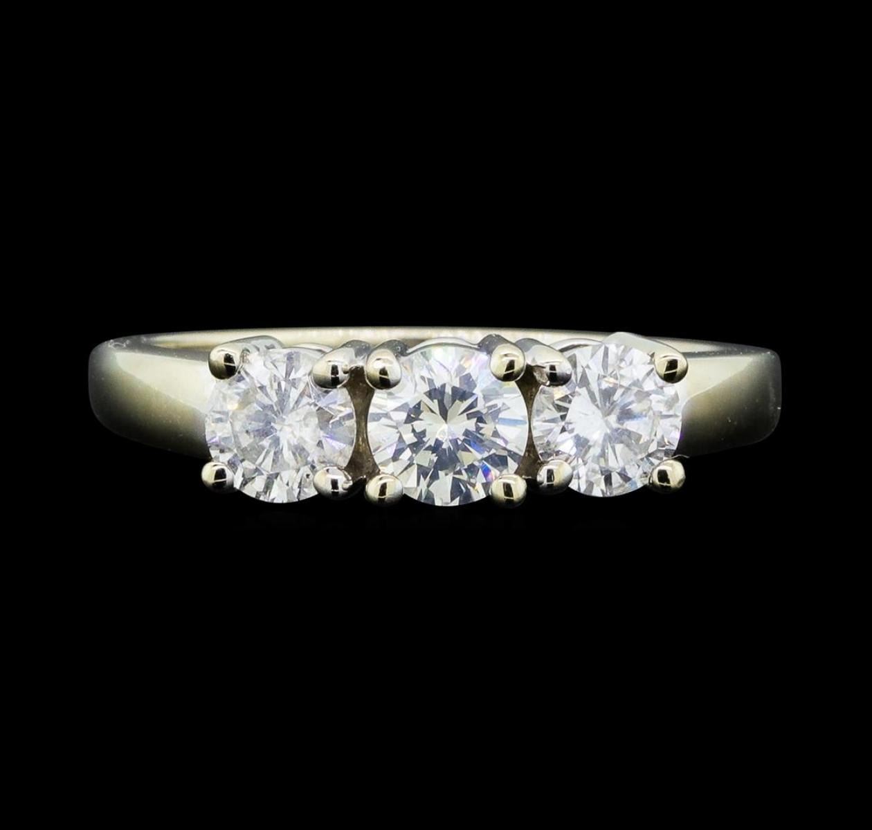 One lady's three stone ring featuring: 14KT white gold weighing 4.2 grams containing three diamonds weighing 1.00ctw.
