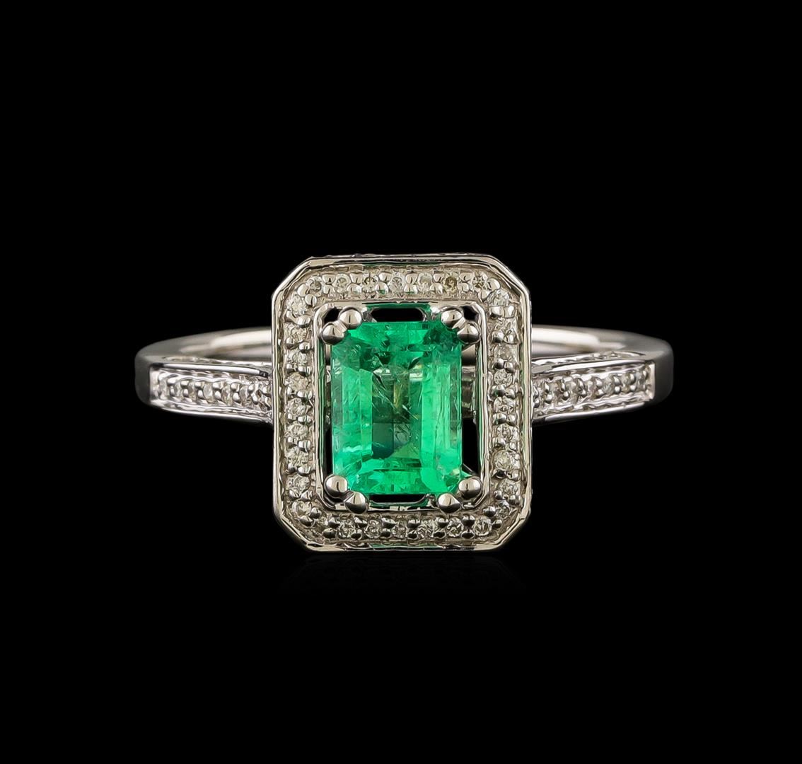 One ring : 14KT white gold weighing 3.75gm containing one emerald center stone with a total weight of 1.00ct and diamonds weighing 1.00ctw.