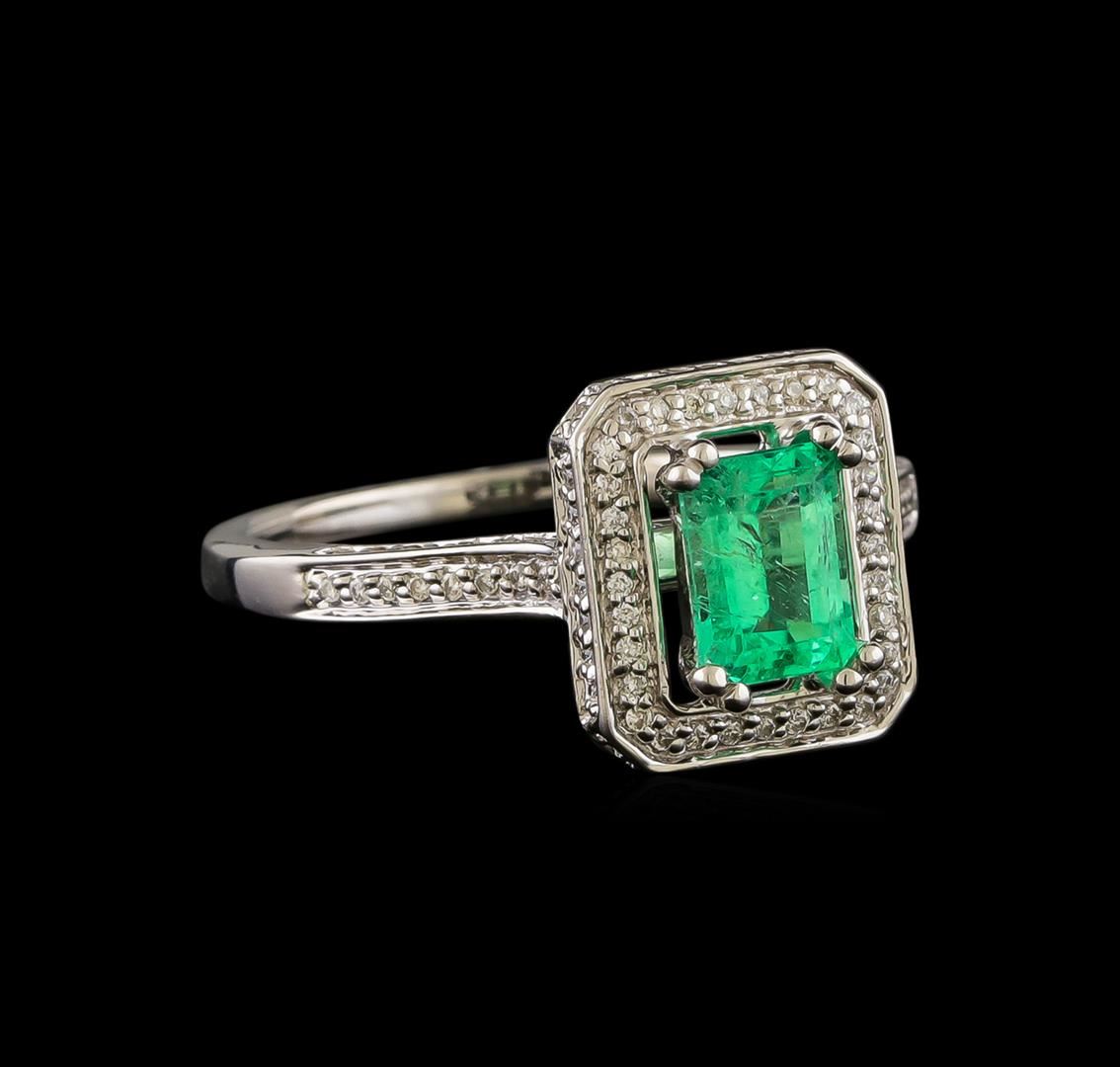 One ring : 14KT white gold weighing 3.75gm containing one emerald center stone with a total weight of 1.00ct and diamonds weighing 1.00ctw.