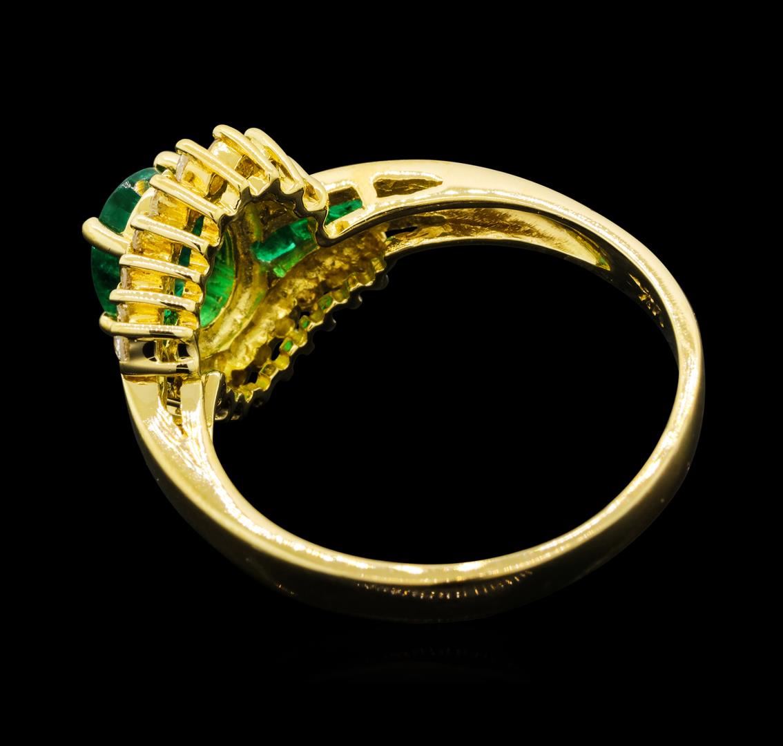 One electronically tested 14KT yellow gold lady's cast fashion ring with a bypass shank with a halo with a bright polish finish. The featured lady's ring has a shank measuring 2.23 millimeters wide. Identified with markings of '14K'. Condition is new, goo GAS Appraised at $1,890.00.