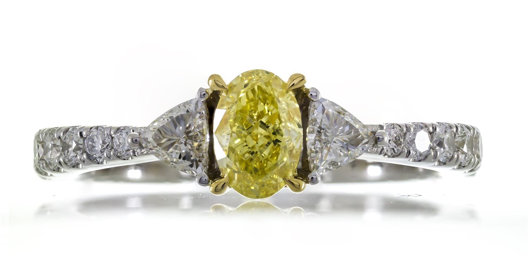 One ring featuring: 18KT Two-Tone Gold weighing 4.09 grams containing one oval cut Fancy Yellow Diamond with a total weight of 1.00 ct and diamonds weighing a total of 0.60 ctw. GIA Appraised.