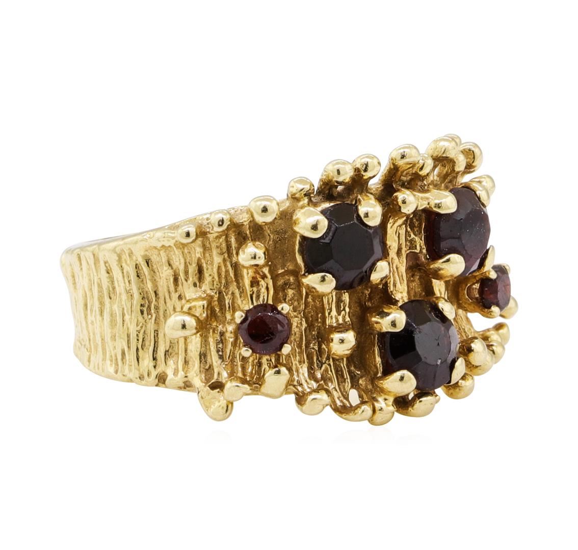 One ring featuring: 14KT yellow gold weighing 7.6 grams containing garnets weighing 1.00ctw.