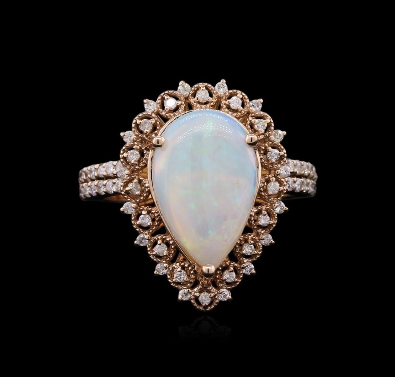 One ring featuring: 14KT rose gold weighing 5.37 grams containing one opal with a total weight of 1.00ct and diamonds with a total weight of 0.46ct.