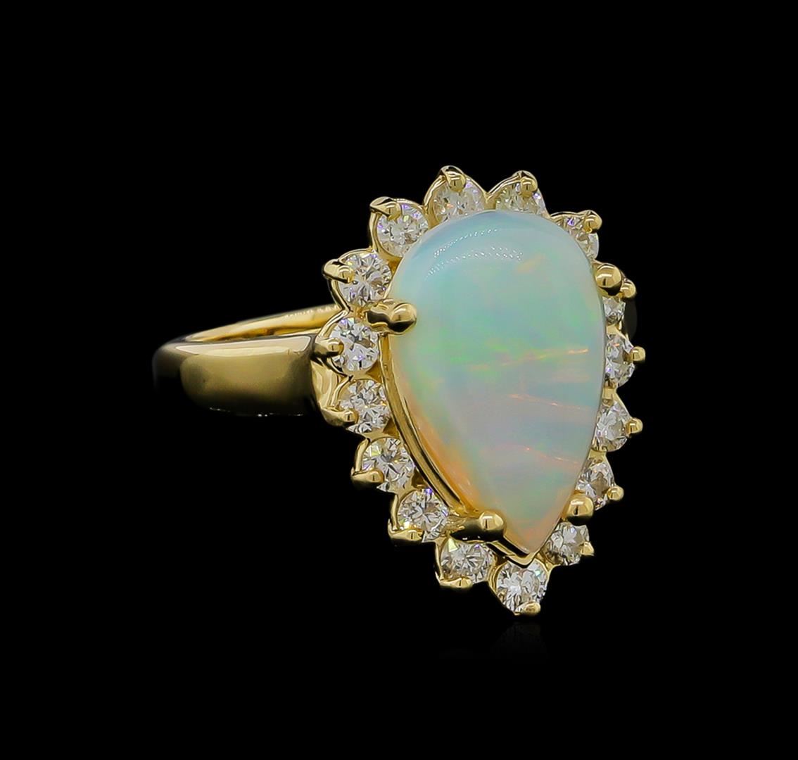 1.00 ctw Opal and Diamond Ring - 14KT Yellow Gold