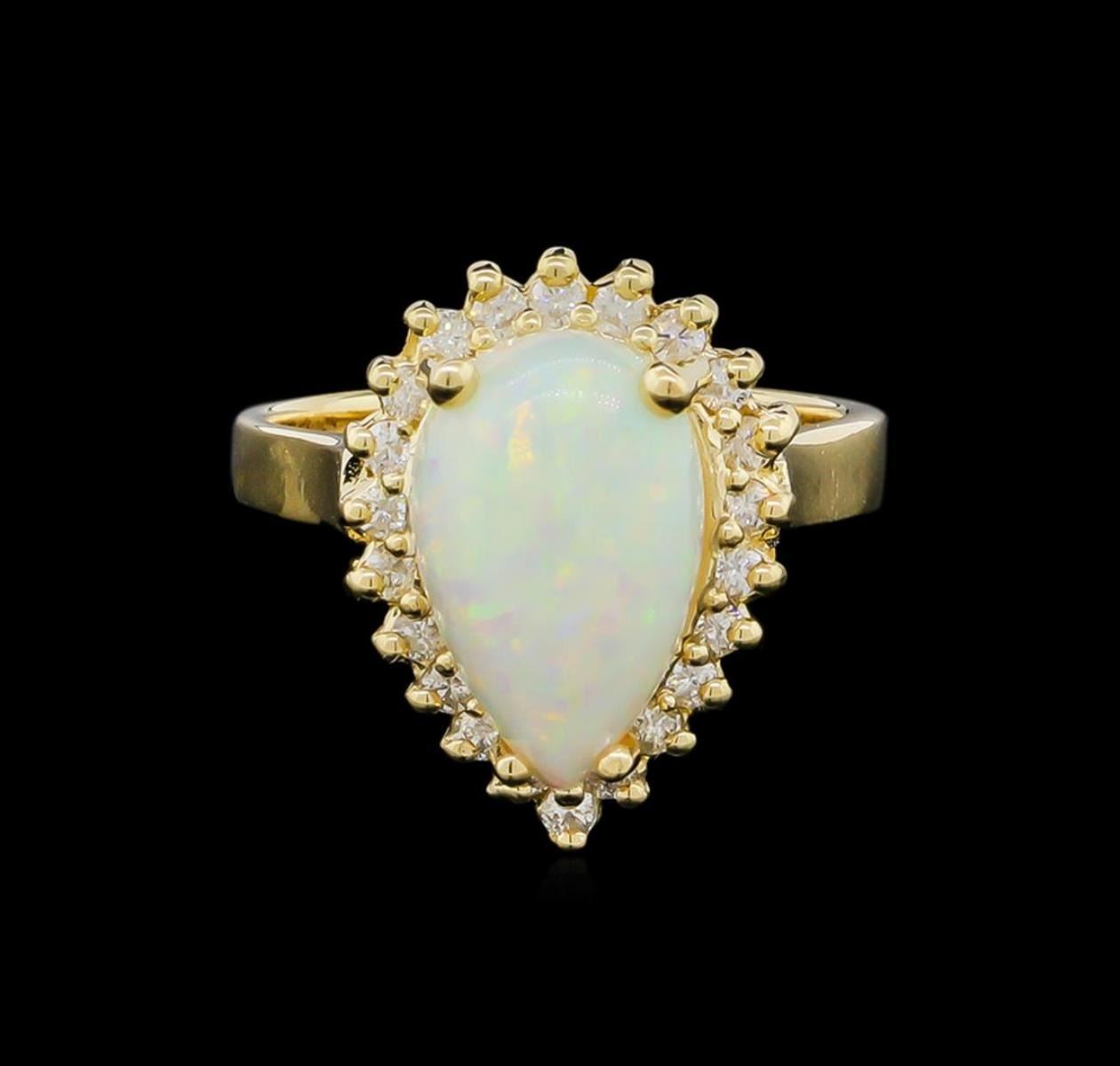 One ring featuring: 14KT yellow gold weighing 5.53 grams containing one opal with a total weight of 1.00ct and side diamonds with a total weight of 0.35ct.