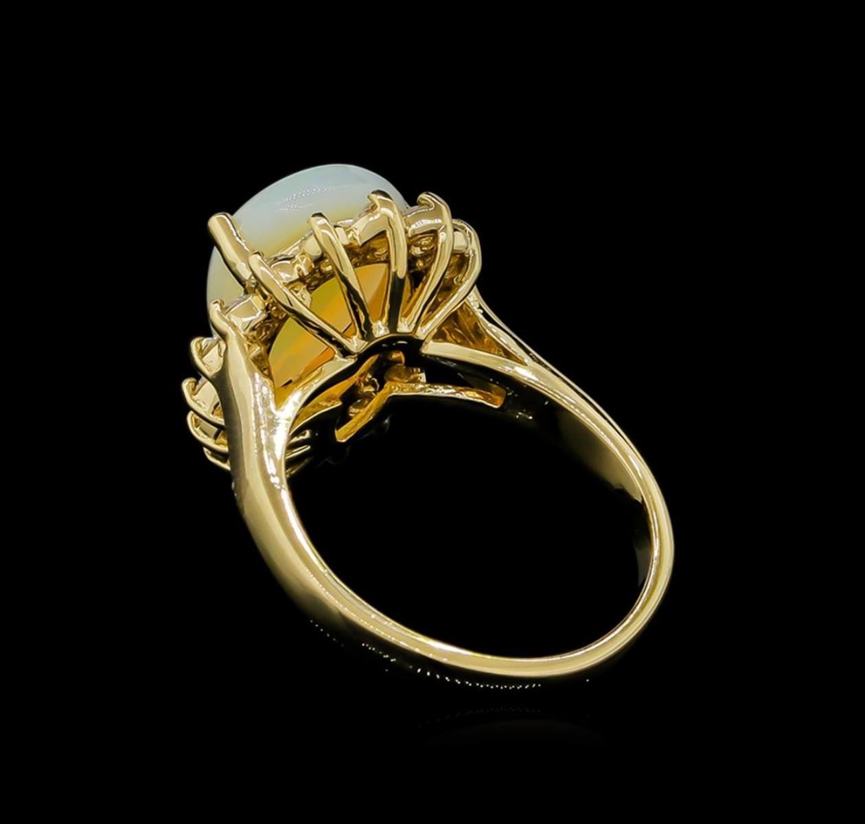 One ring featuring: 14KT yellow gold weighing 5.69 grams containing one opal with a total weight of 1.00ct and side diamonds with a total weight of 0.68ct.