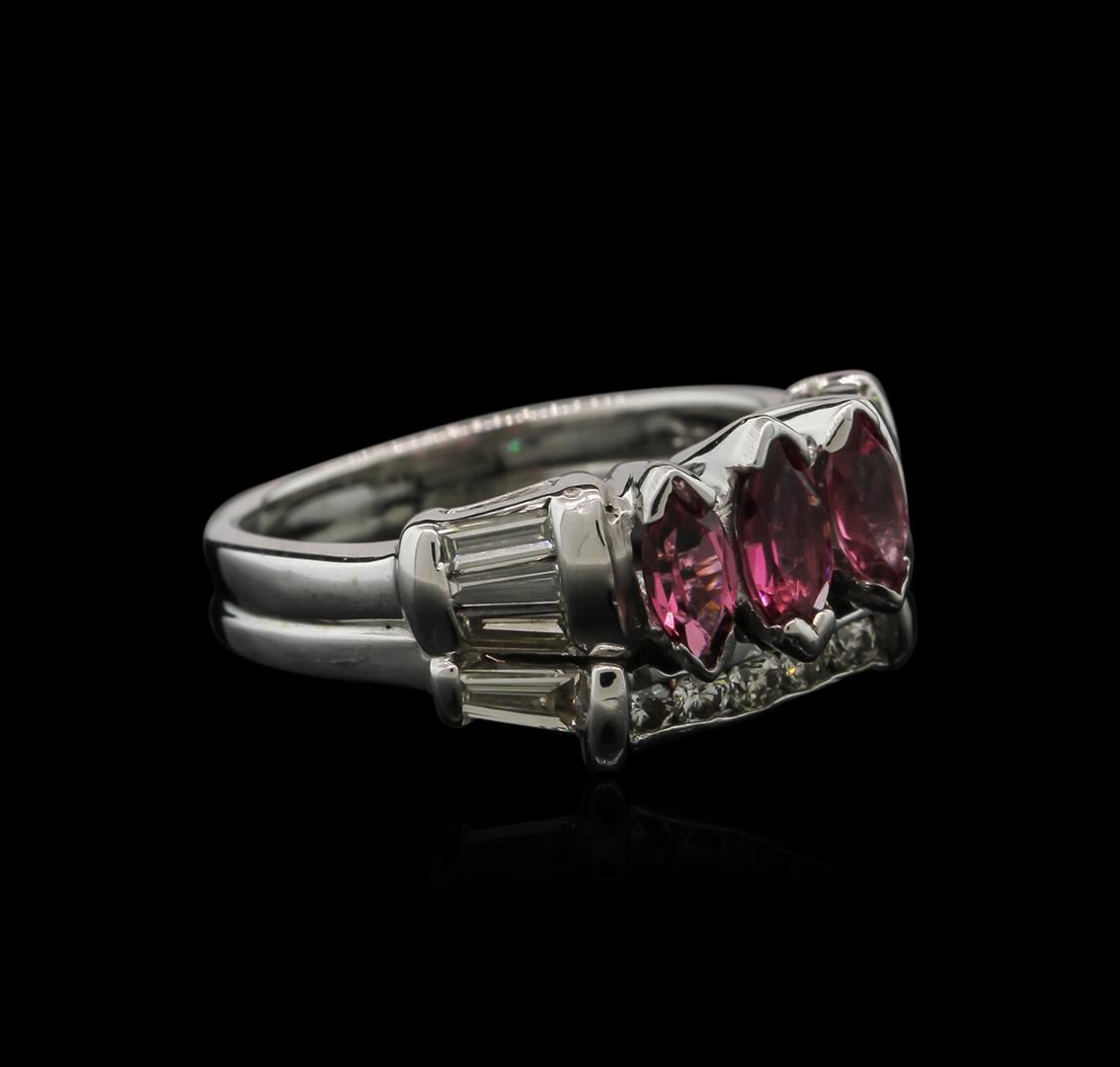 One ring featuring: 14KT white gold weighing 6.67 grams containing three pink tourmaline with a total weight of 1.00ct and diamonds with a total weight of 0.50ct.