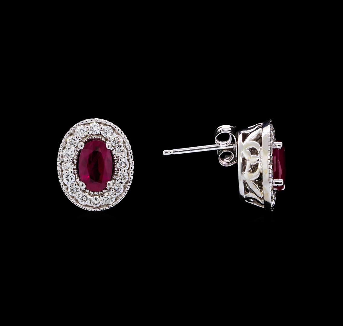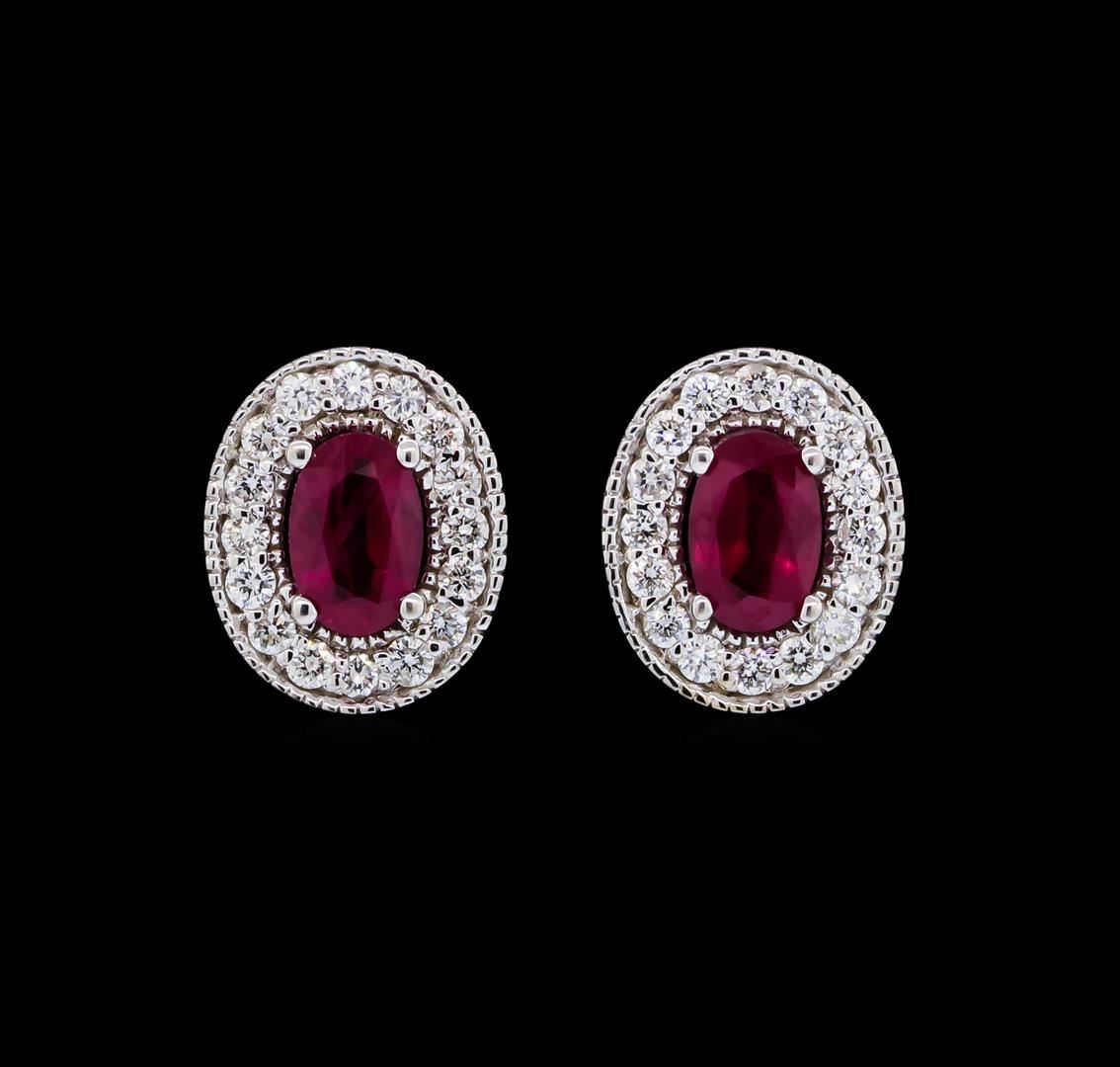 One pair of ruby and diamond earrings featuring: 14KT white gold weighing 2.0 grams containing rubies weighing 1.00ctw and diamonds weighing 0.43ctw.