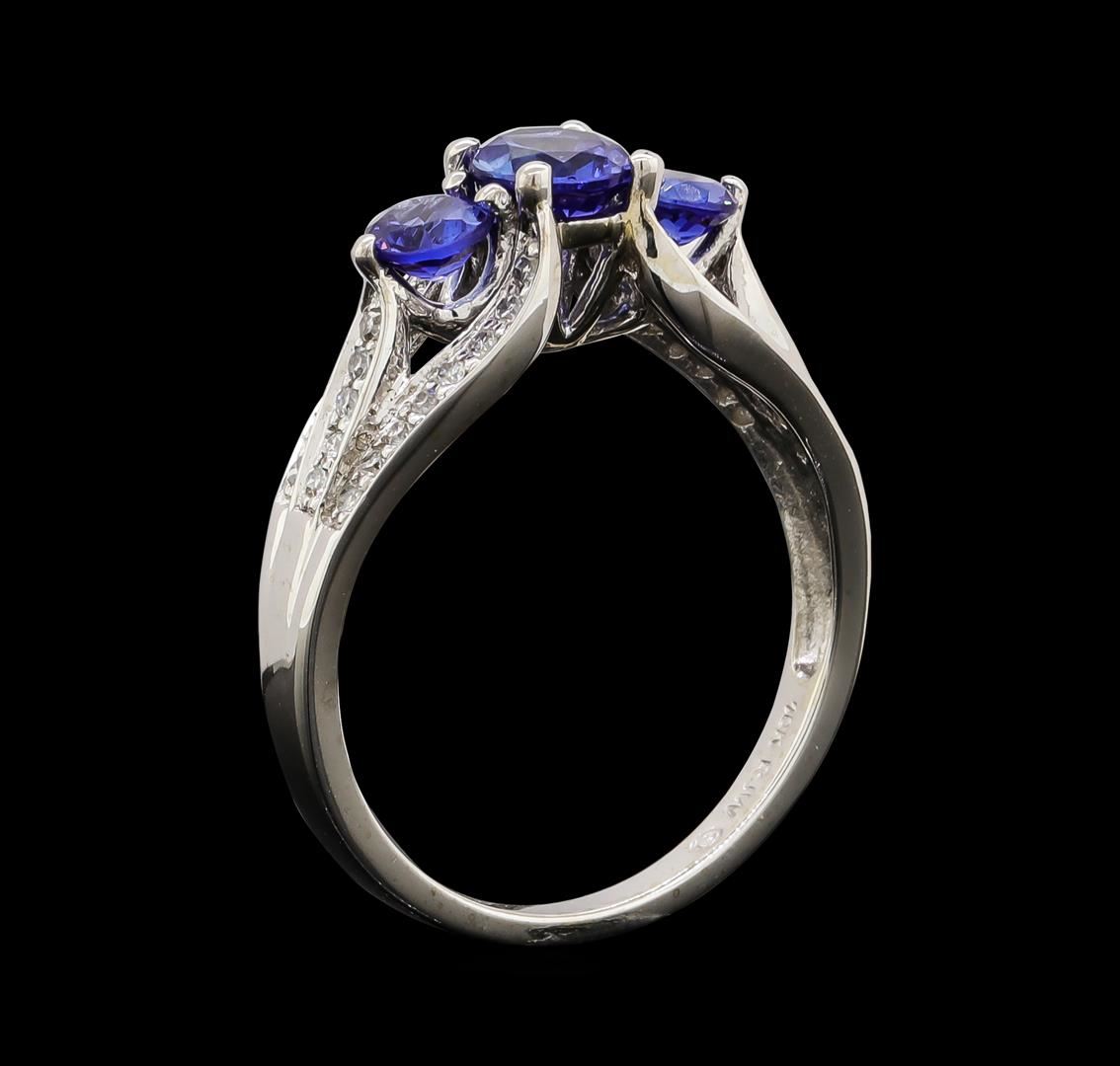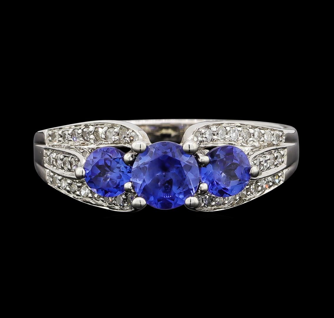 One ring: 10KT white gold weighing 2.80 grams containing three tanzanites weighing 1.00ctw and diamonds weighing 0.15ctw.