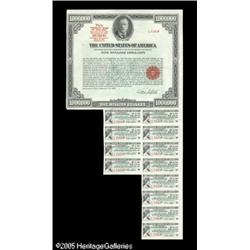 <B>$1,000,000 U.S. Treasury Bearer Bond.</B></I> A $1,000,000 thirty year U.S. Treasury bearer bond with twelve coupons affixed which was issued in February of 1977 and called on February 15, 2002. Issued at its face value of $1,000,000, it is still redeemable for this amount and will be until 2047. Bearer bonds have not been issued by the Treasury since 1986, and all bonds issued today are in book entry form, registered to specific individuals or institutions. Prior to selling the Taylor Family Collection we have never had the privilege of offering a bond in this denomination, and we doubt whether enough exist in this unredeemed form that we ever will again, as the cost of keeping this bond as a collectible is one that few in the numismatic fraternity are likely to assume. If you are looking for an item that will afford you the ultimate in "bragging rights," this is definitely an item you should bring home this evening. Lot:15547