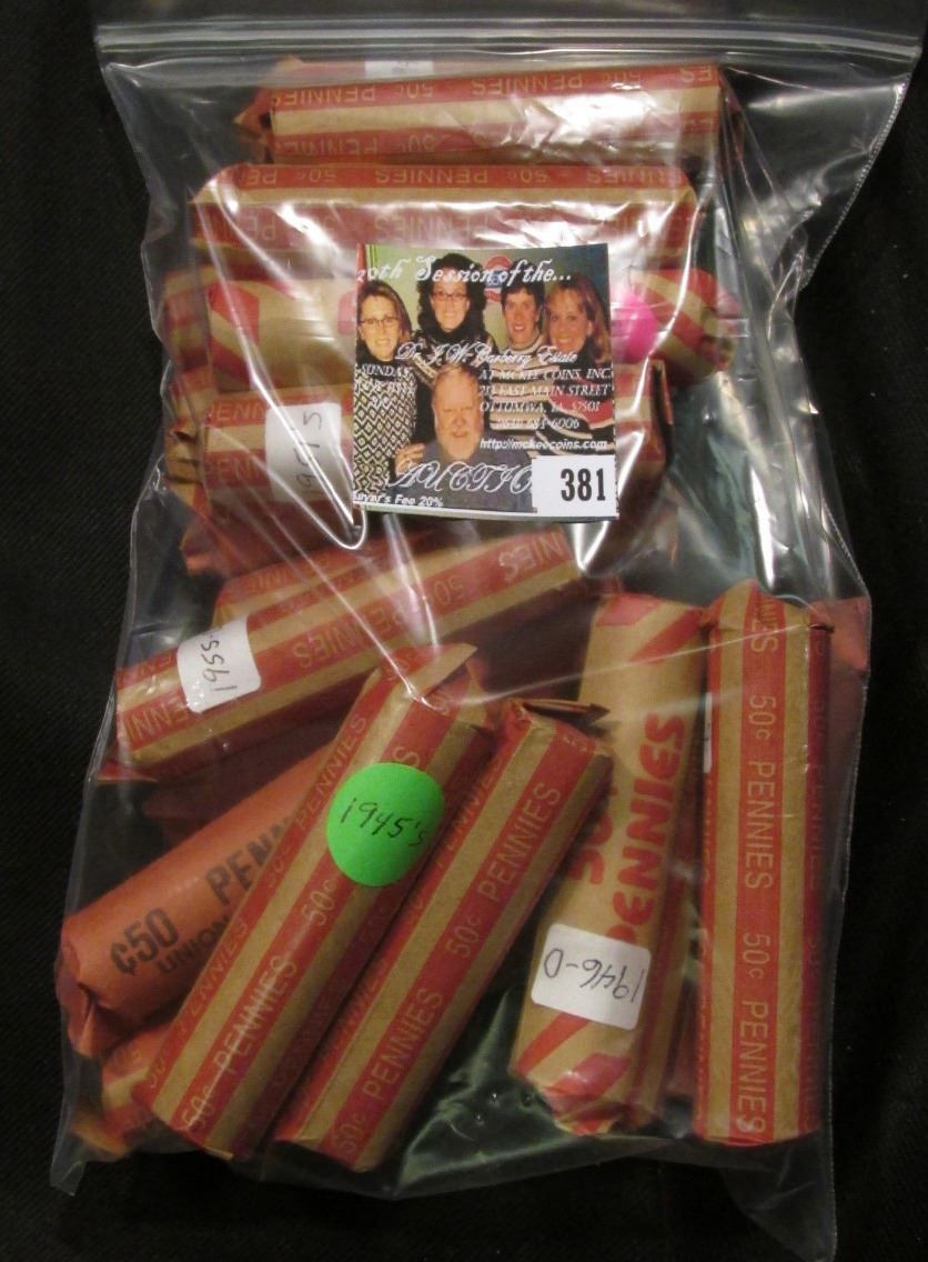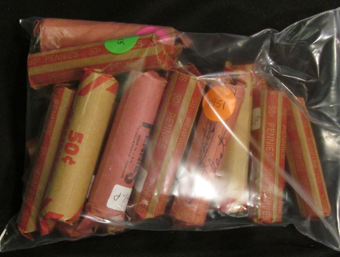 (1,000) Wheat back Lincoln Cents sorted by date in paper wrappers.