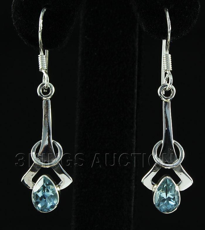 1.00CT Blue Topaz Unique Design .925 Hook Earring 2.61g **|**|** 1.64in. Long Sterling Silver Dangling Hook Earring with a Blue Topaz Faceted Gem Measuring 7x5mm Pear ; MSRP: $300