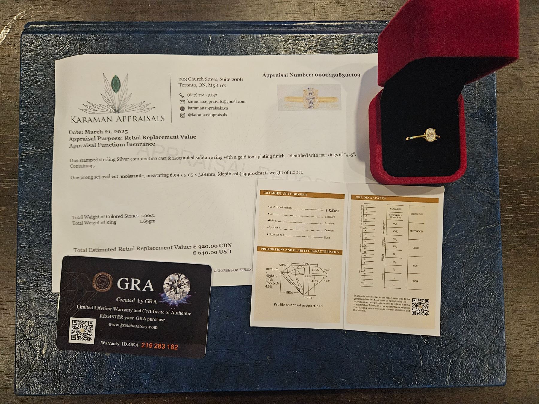 1.00 CT GRA CERTIFIED OVAL CUT MOISSANITE STONE VVS D COLOR SET IN 4 CLAW HEAD SET IN 925 SILVER RING SIZE 9 WITH YELLOW GOLD PLATING RETAIL VALUE $920.00
