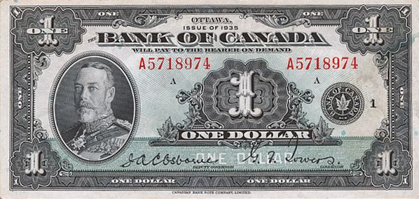 1935 Issue. BC-1. English Text. No. A5718974/A. PMG graded Choice UNC-64.