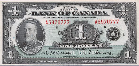 1935 Issue. BC-1. English Text. No. A5970777/D. BCS graded Unc-60.