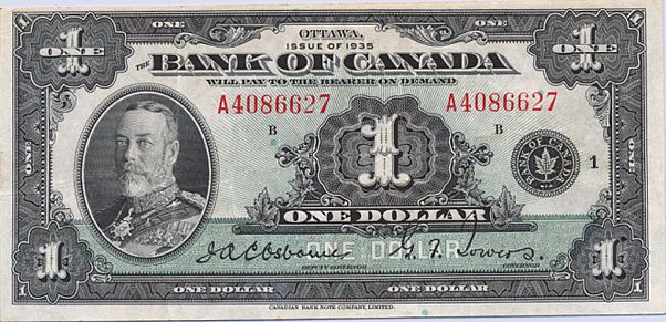 1935 Issue. BC-1. English Text. No. A4086627/B. PMG graded CH VF-35. Affordable and quite clean.