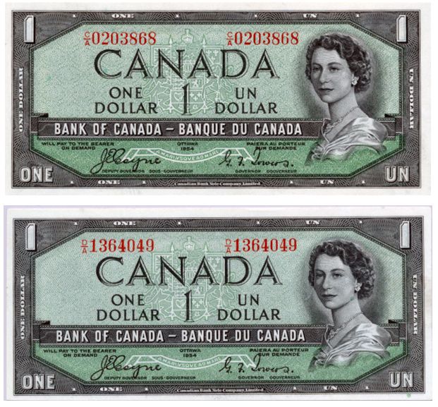 1954 Issue. BC-29a. Coyne-Towers. ‘Devil’s Face’. No. C/A0203868, No. D/A1364049. Both BCS graded Unc-60.