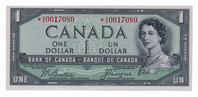 1954 Issue. BC-29bA. Beattie-Coyne. ‘Devil’s Face’. No. *A/A0017080. BCS graded Unc-60. A rare replacement note.