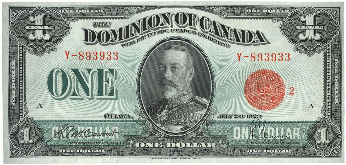 July 2, 1923. DC-25g. McCavour-Saunders. Red seal, Group 2. No. Y-893933/A. Uncirculated.