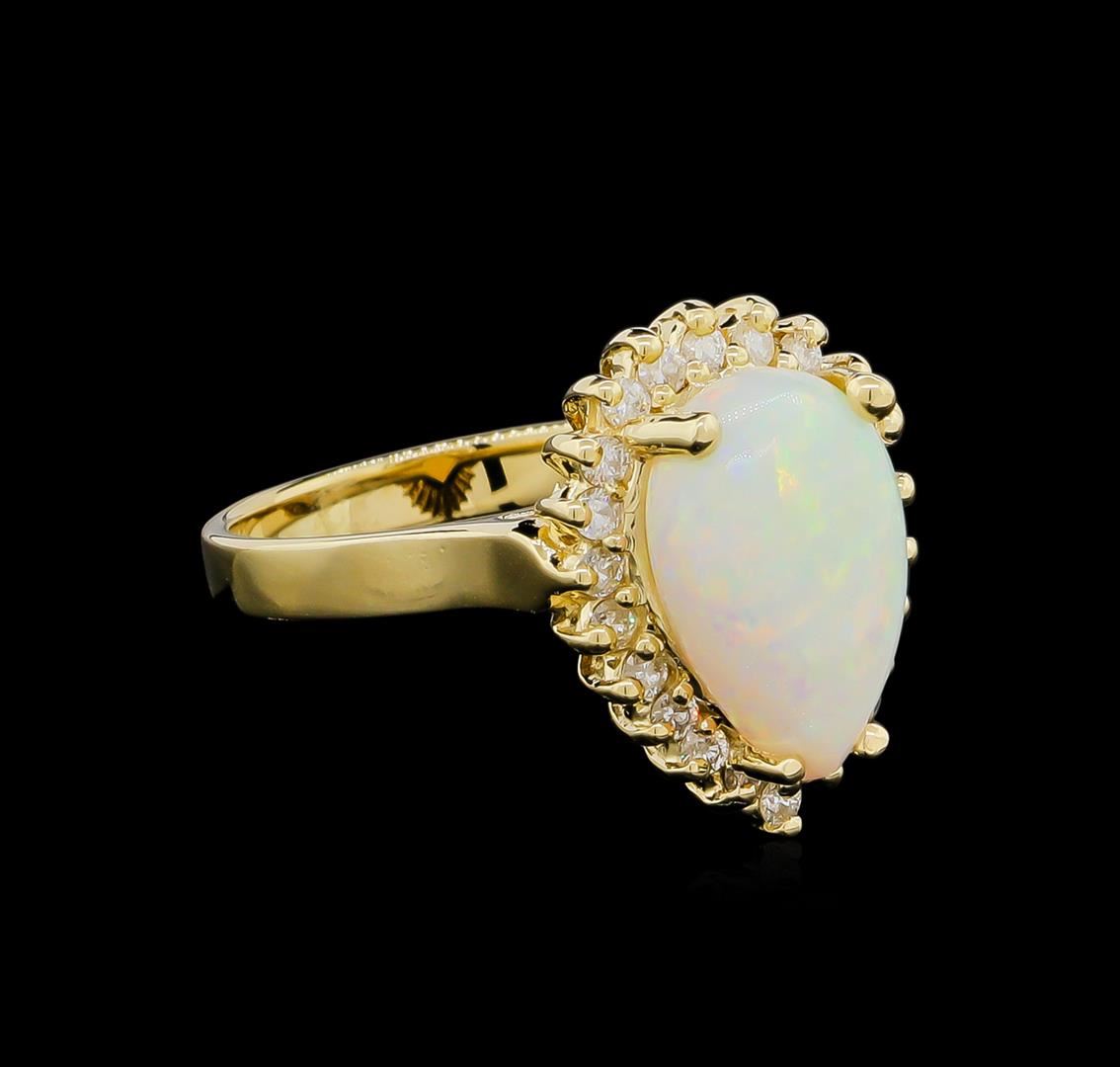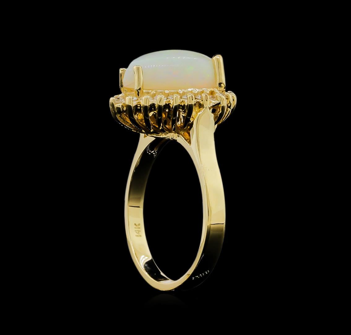 One ring featuring: 14KT yellow gold weighing 5.53 grams containing one opal with a total weight of 1.00ct and side diamonds with a total weight of 0.35ct.