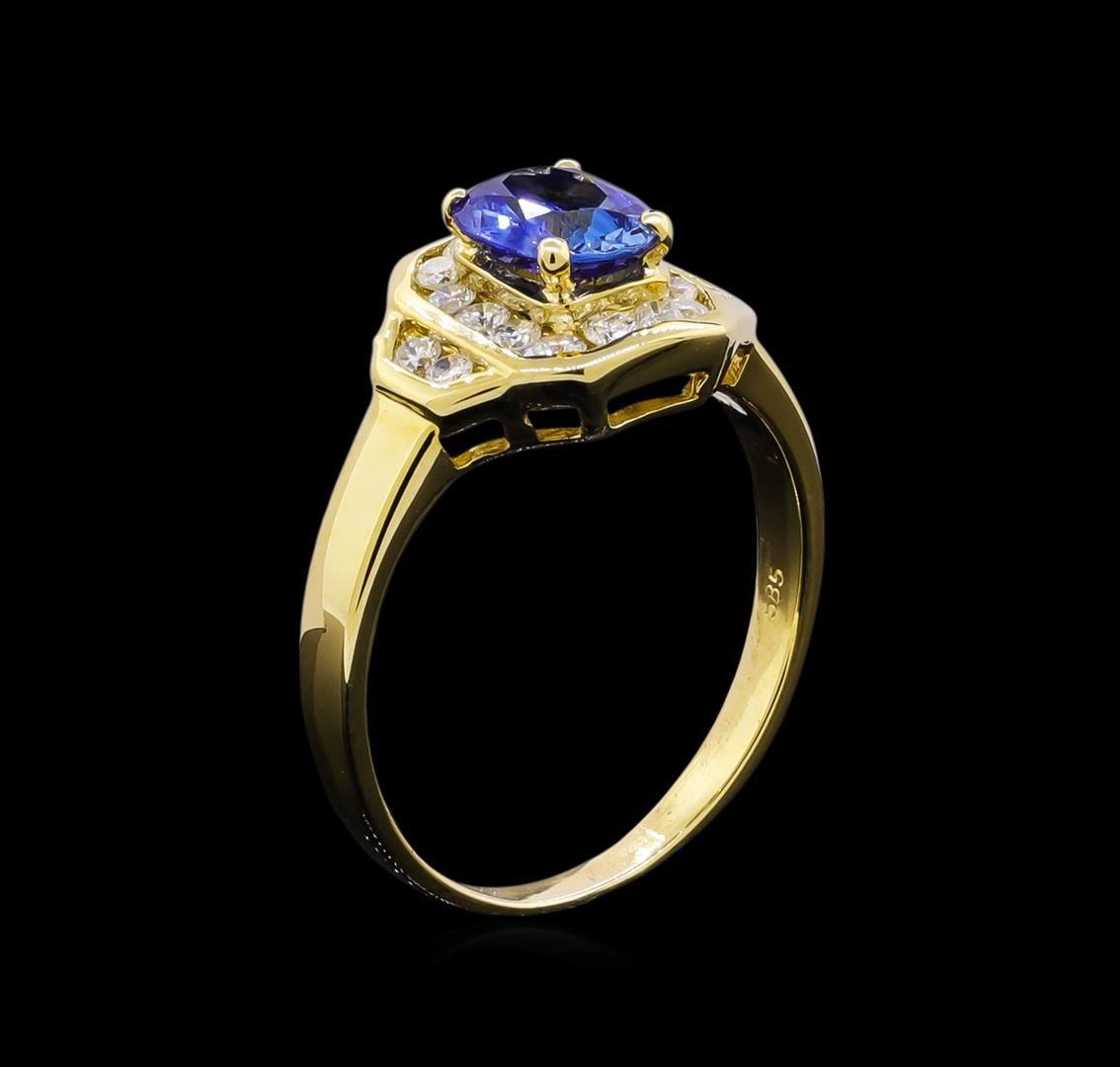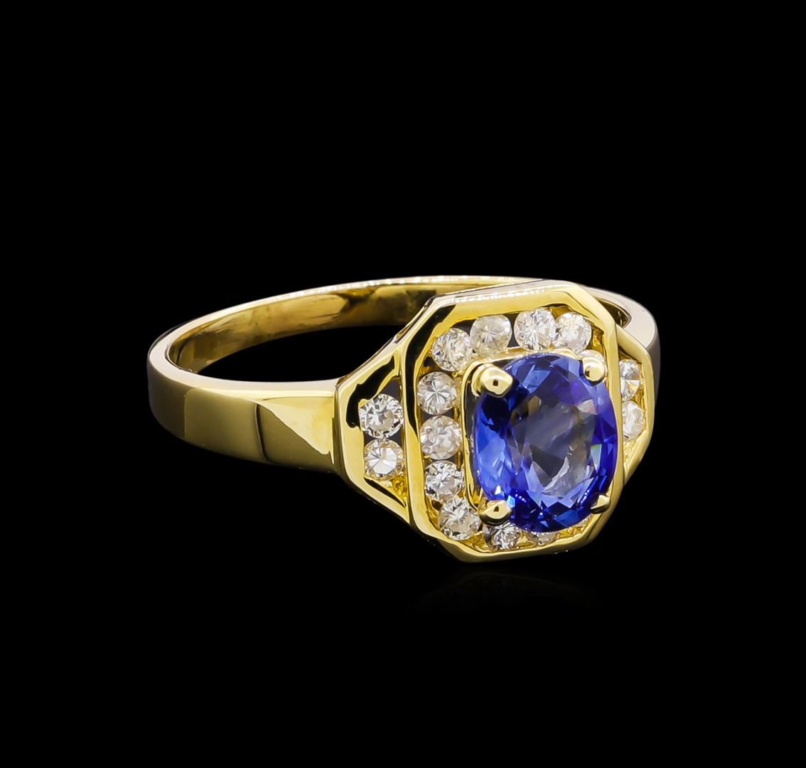 One ring featuring: 14KT yellow gold weighing 3.59 grams containing one tanzanite with a total weight of 1.00ct and side diamonds with a total weight of 0.40ct.