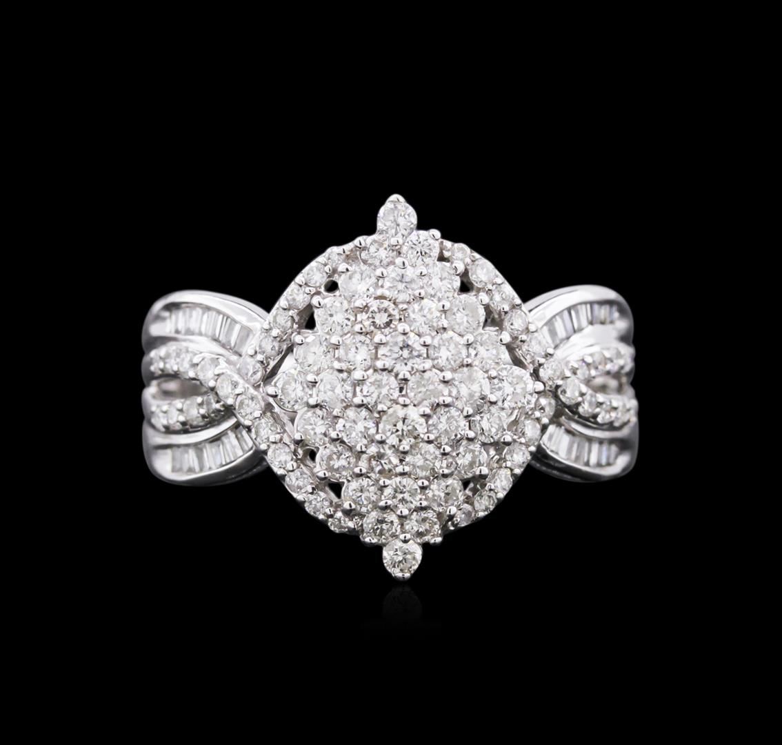 One ring featuring: 14KT white gold weighing 3.30 grams containing 76 brilliant and 24 baguette cut diamonds with a total weight of 1.00ct.